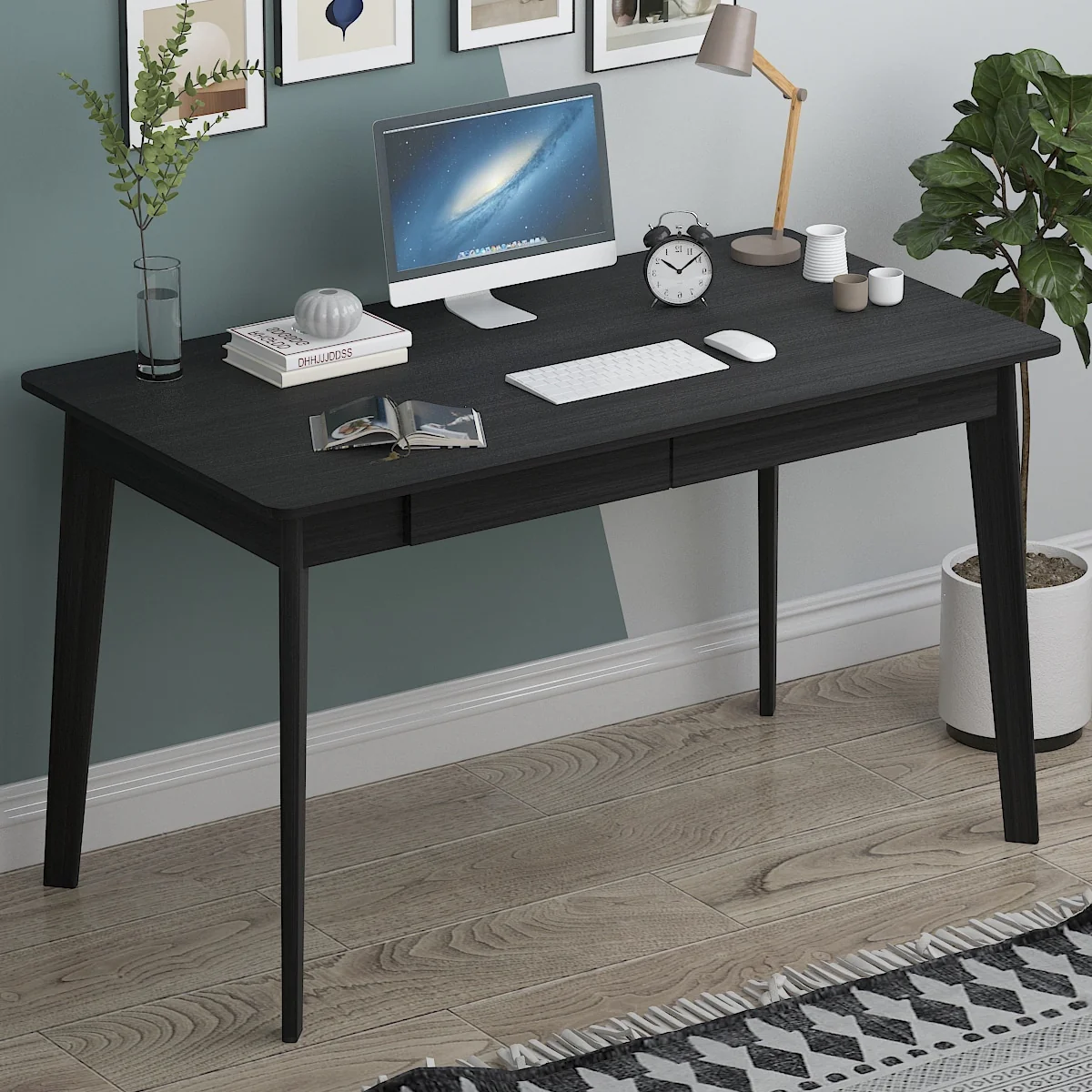 Modern Computer Desk Wood Work Tables With 2 Drawers