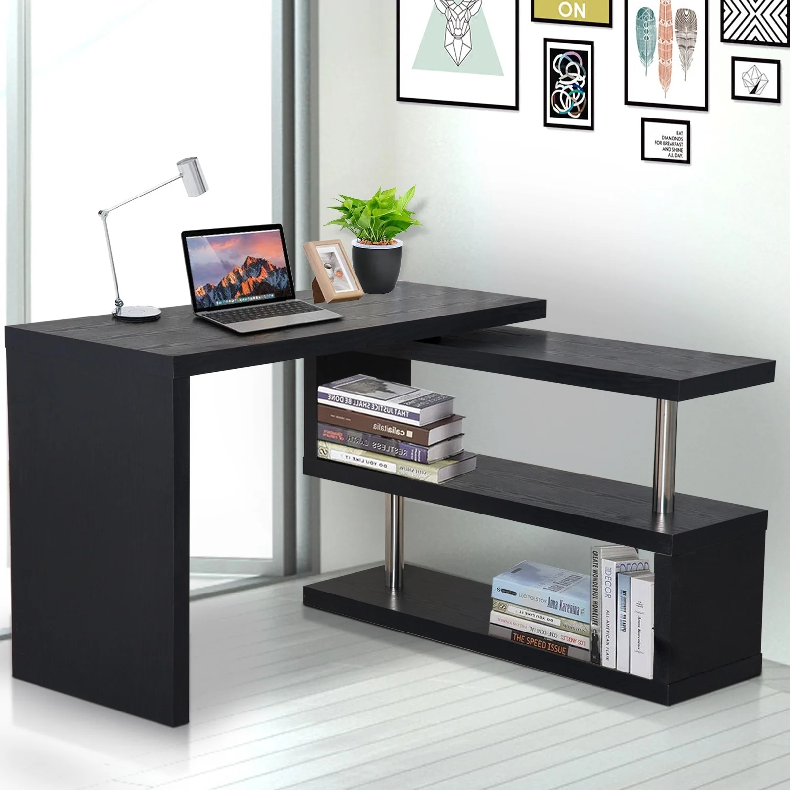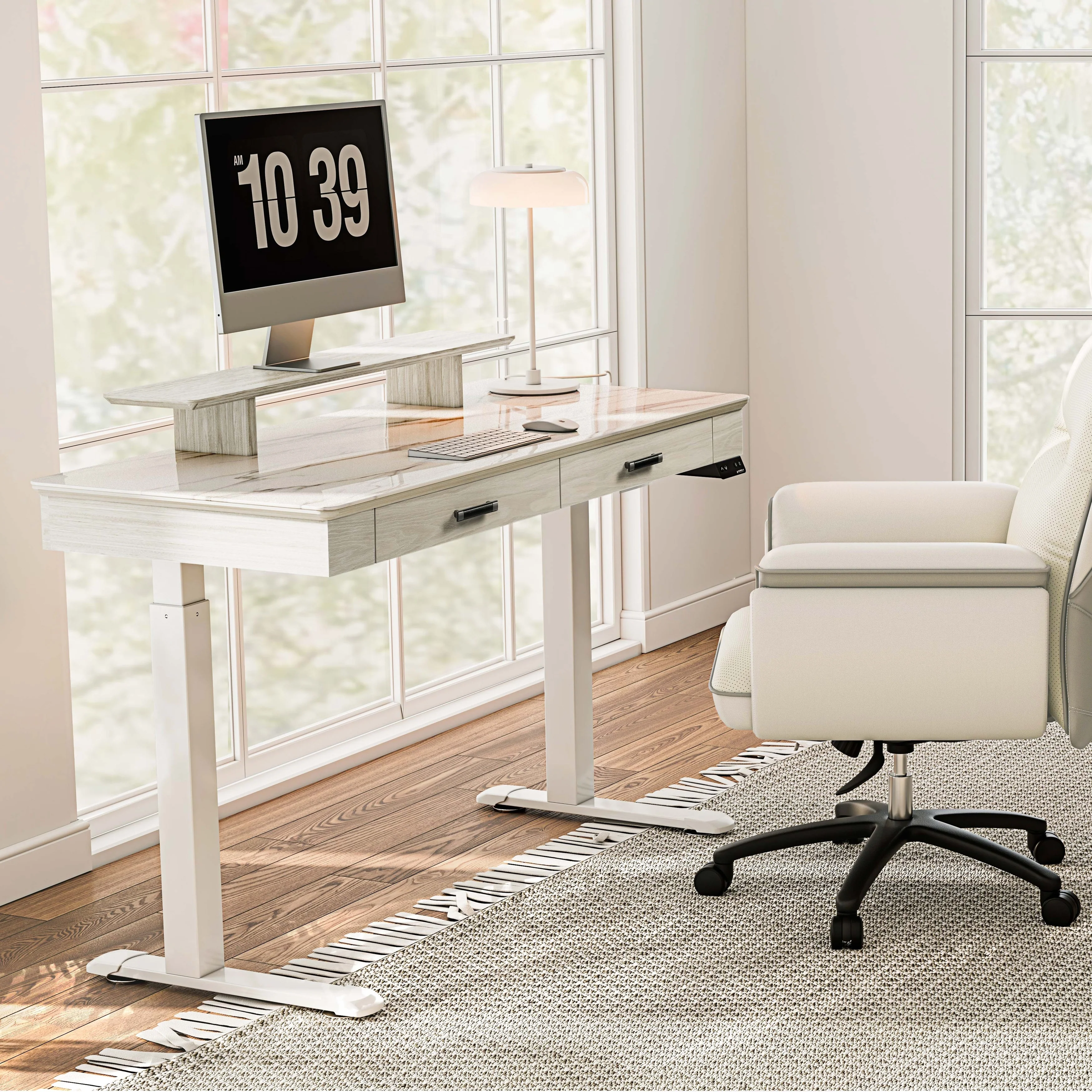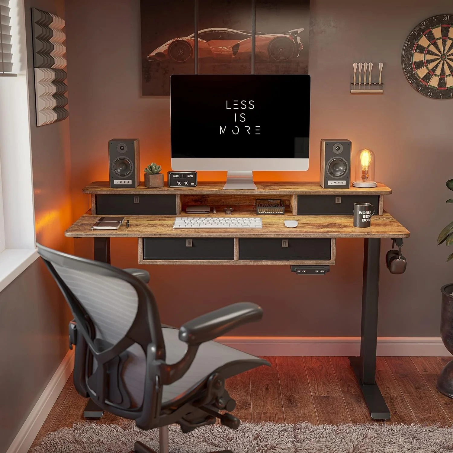 Wood Computer Desk with Drawers and Metal Pedestal Base