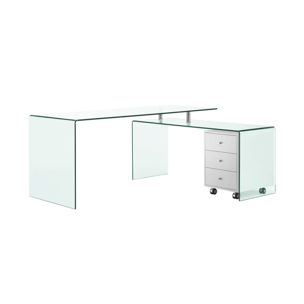 RIO High Gloss White Lacquer w Glass Office Desk by Casabianca Home