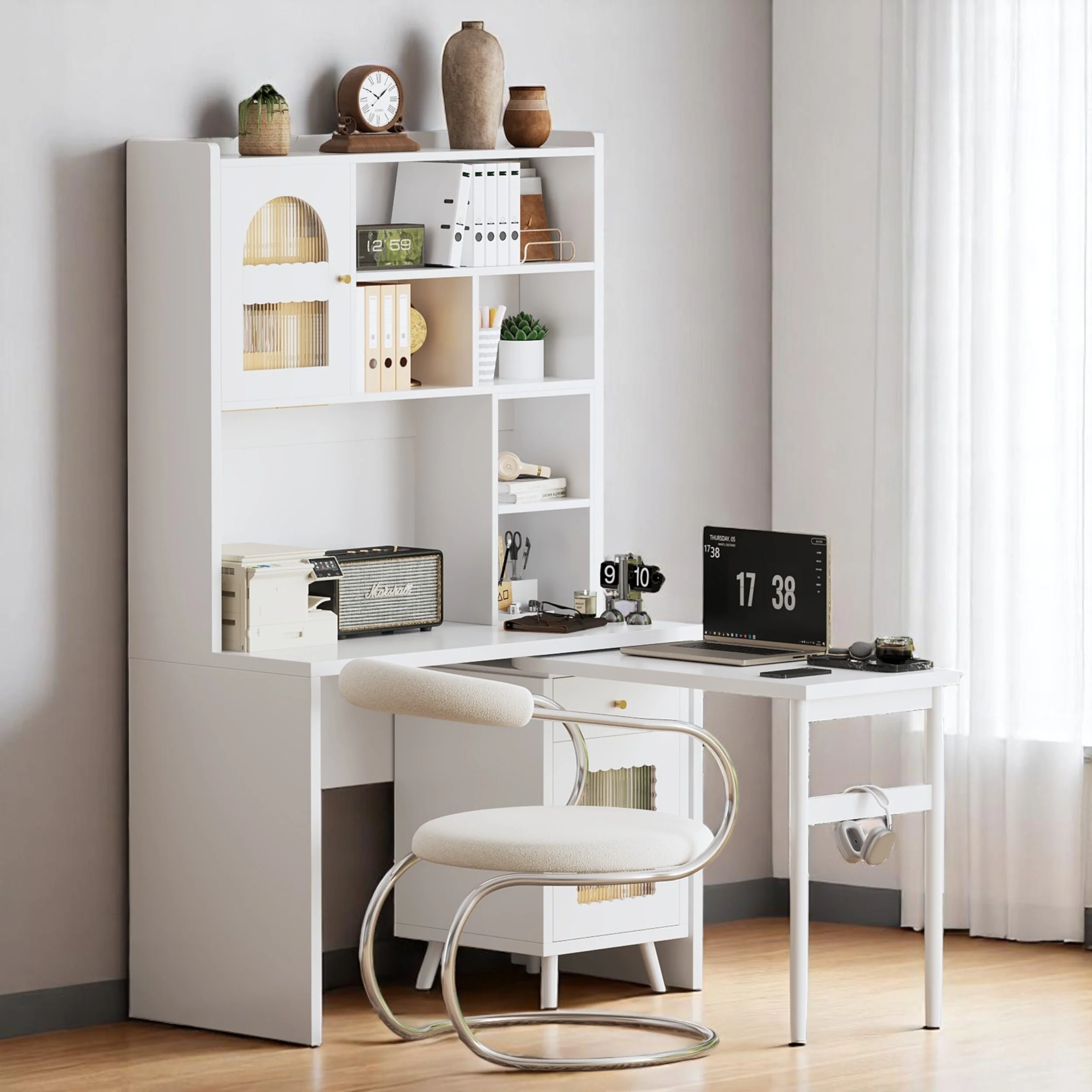 55.7 Uplift L Shaped Computer Desk with Drawers & Monitor Stand