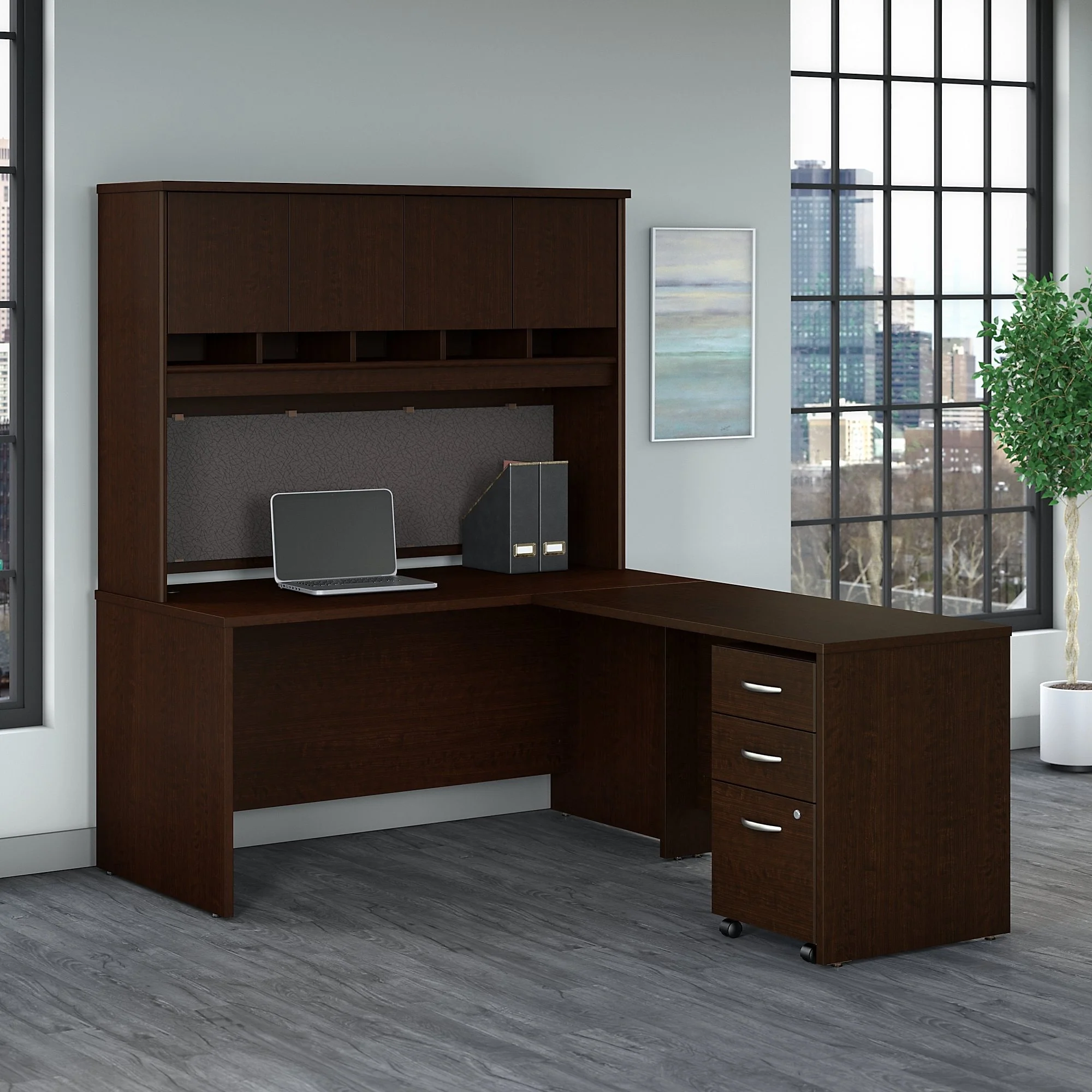 Bestar Prestige Plus L-shaped Desk with Hutch