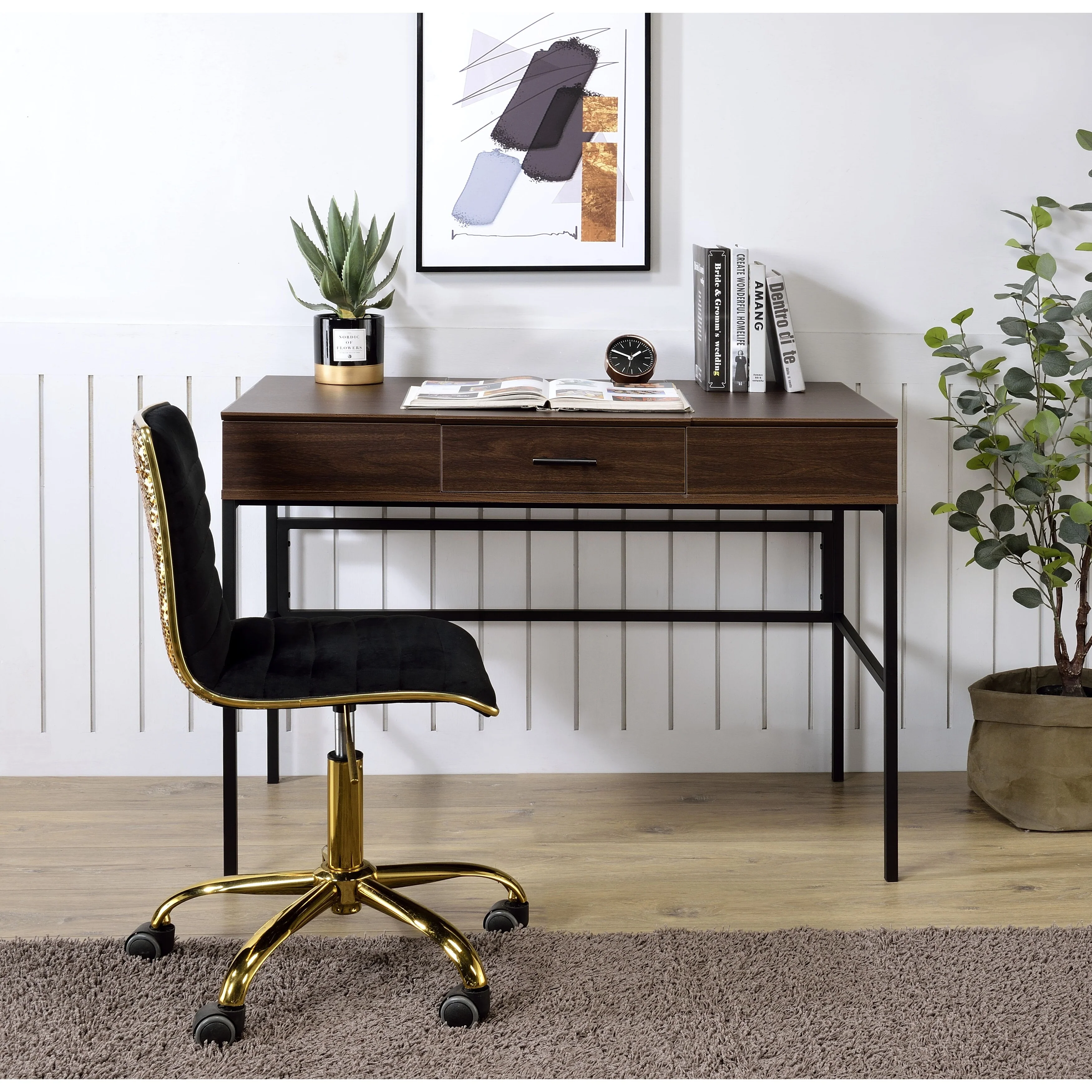 Verster Oak & Black Finish Writing Desk W/USB