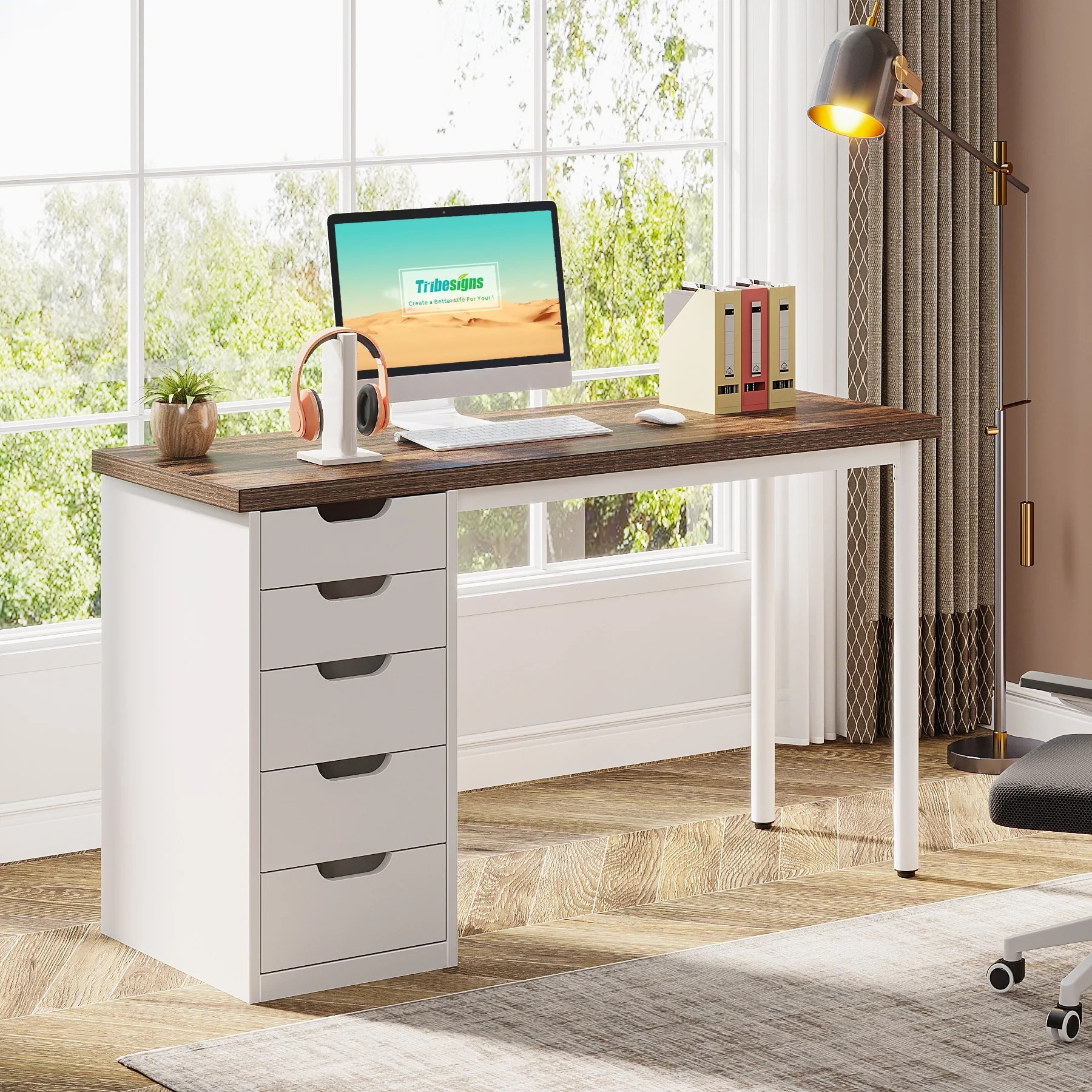 Modern 5 Drawers Computer Writing Desk with Acrylic Base