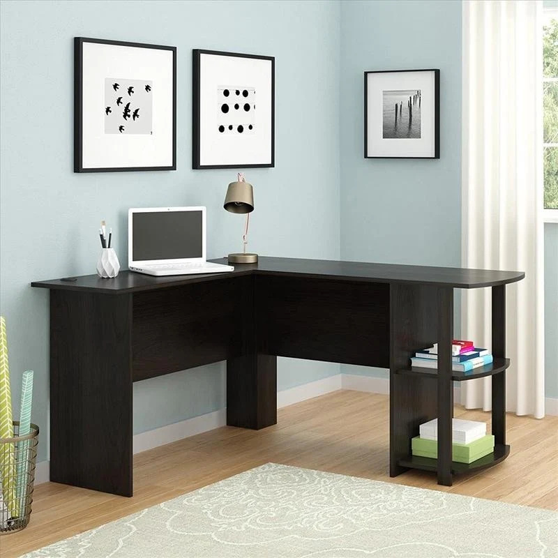 L-Shaped Wood Computer Desk with 2-layer bookshelf