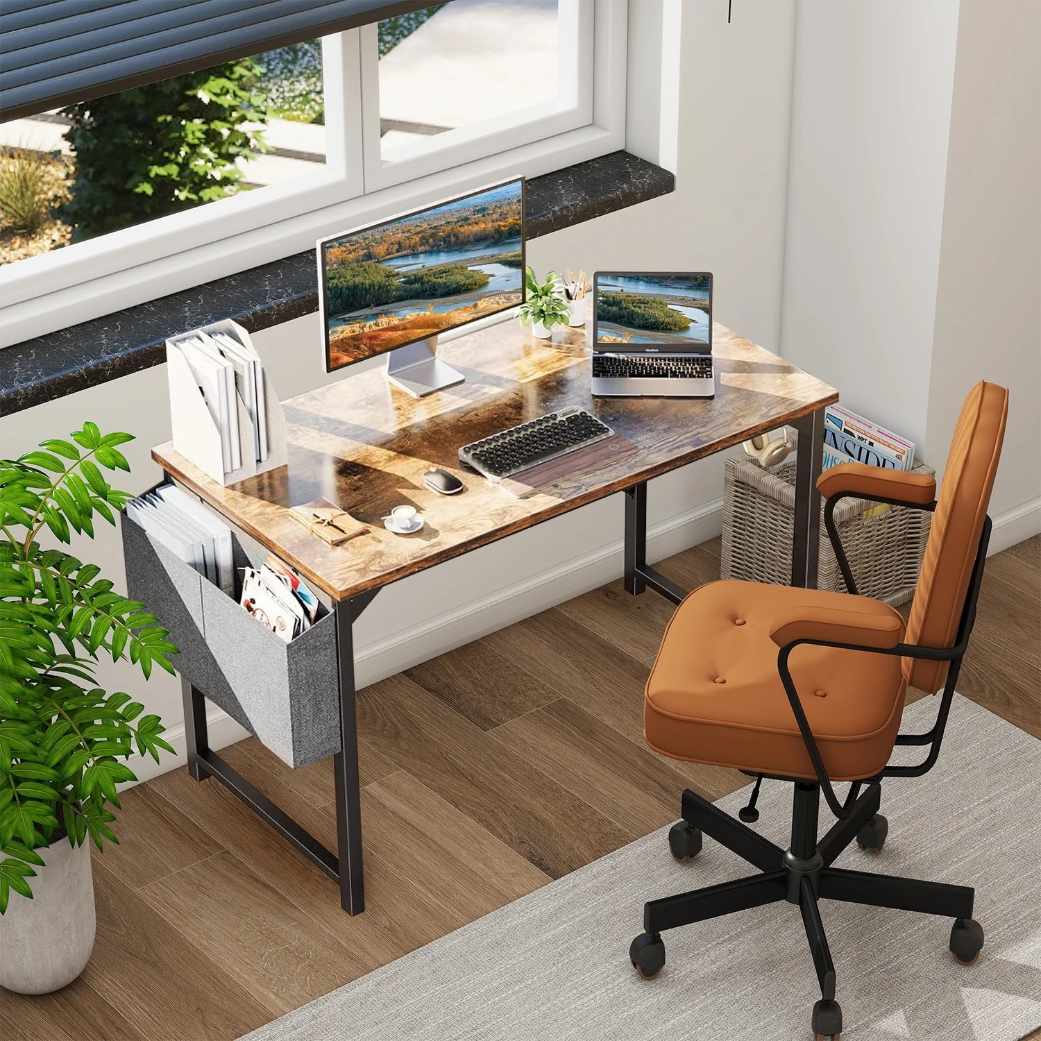 Wood Computer Desk with Hutch, Bookshelf and USB-Ports