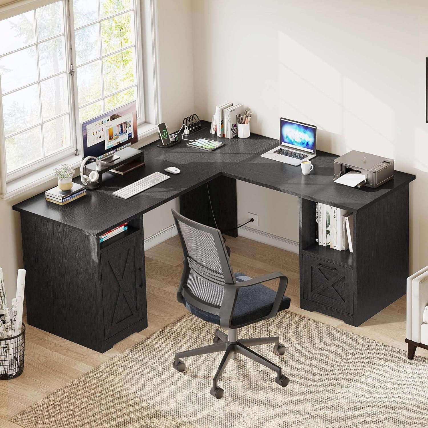 Large 63 L-Shaped Executive Office Desk with 31” File Cabinet