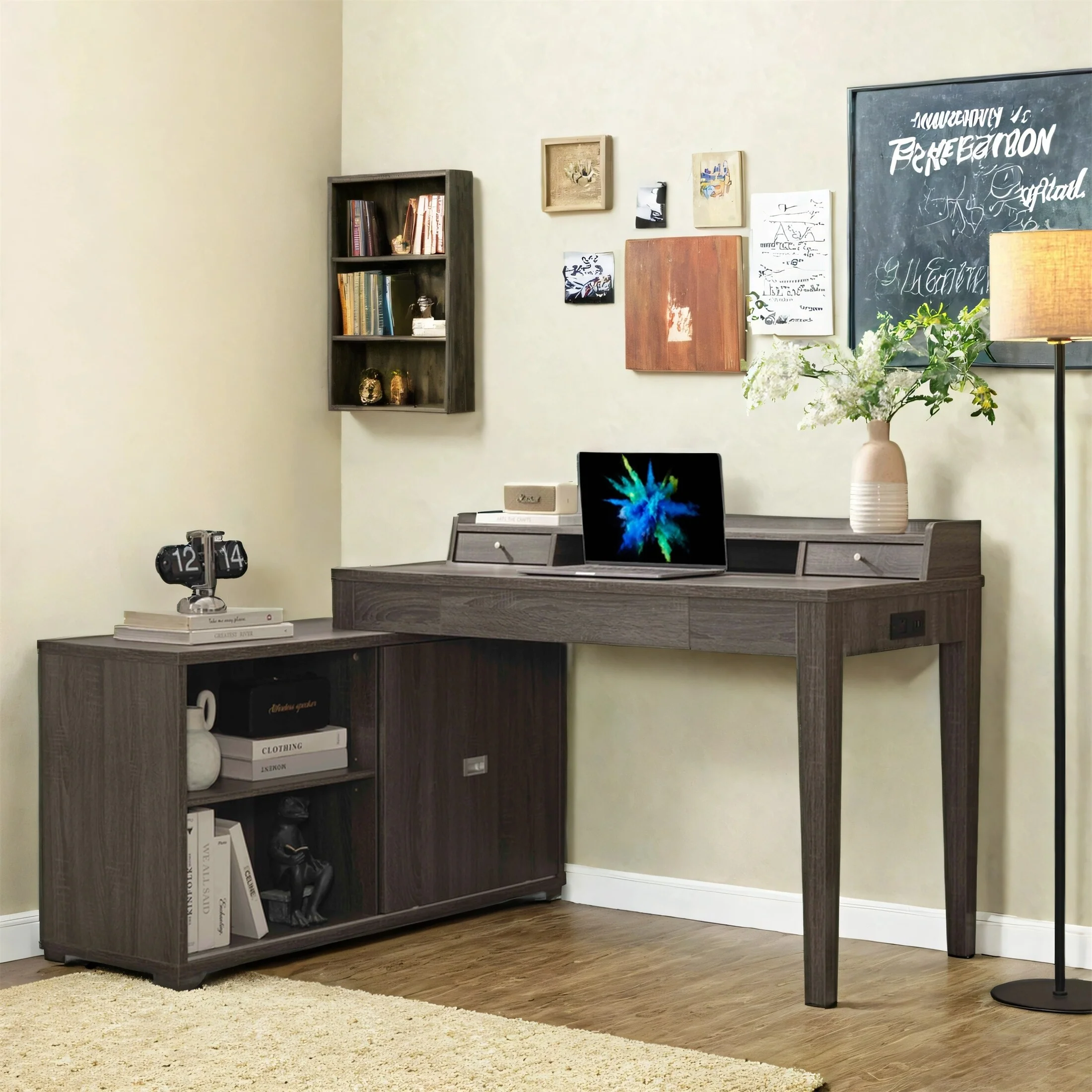 Work Desk with Drawer and Built-In Charging Station