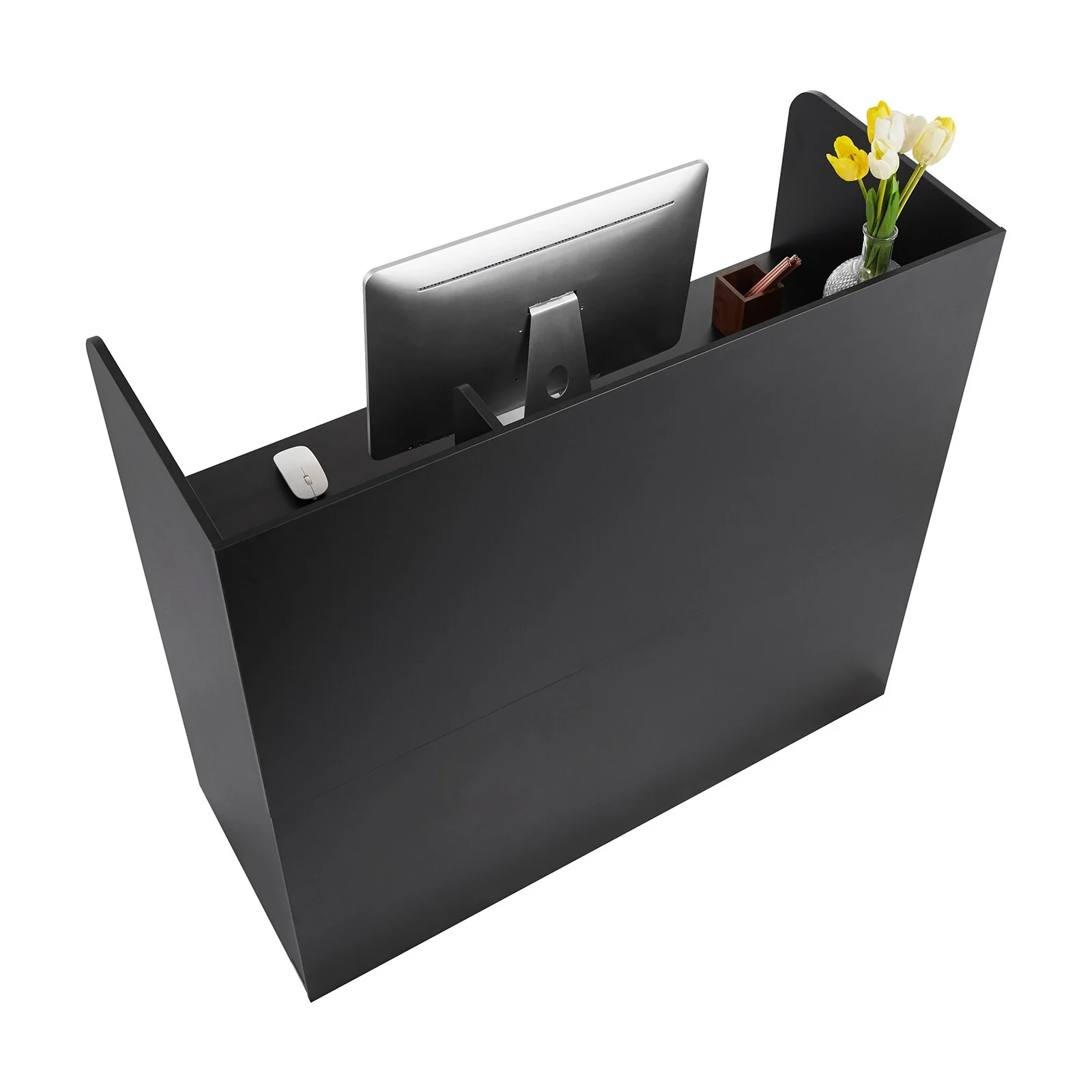 Black MDF Reception Desk with 3 Drawers and Cabinet Storage