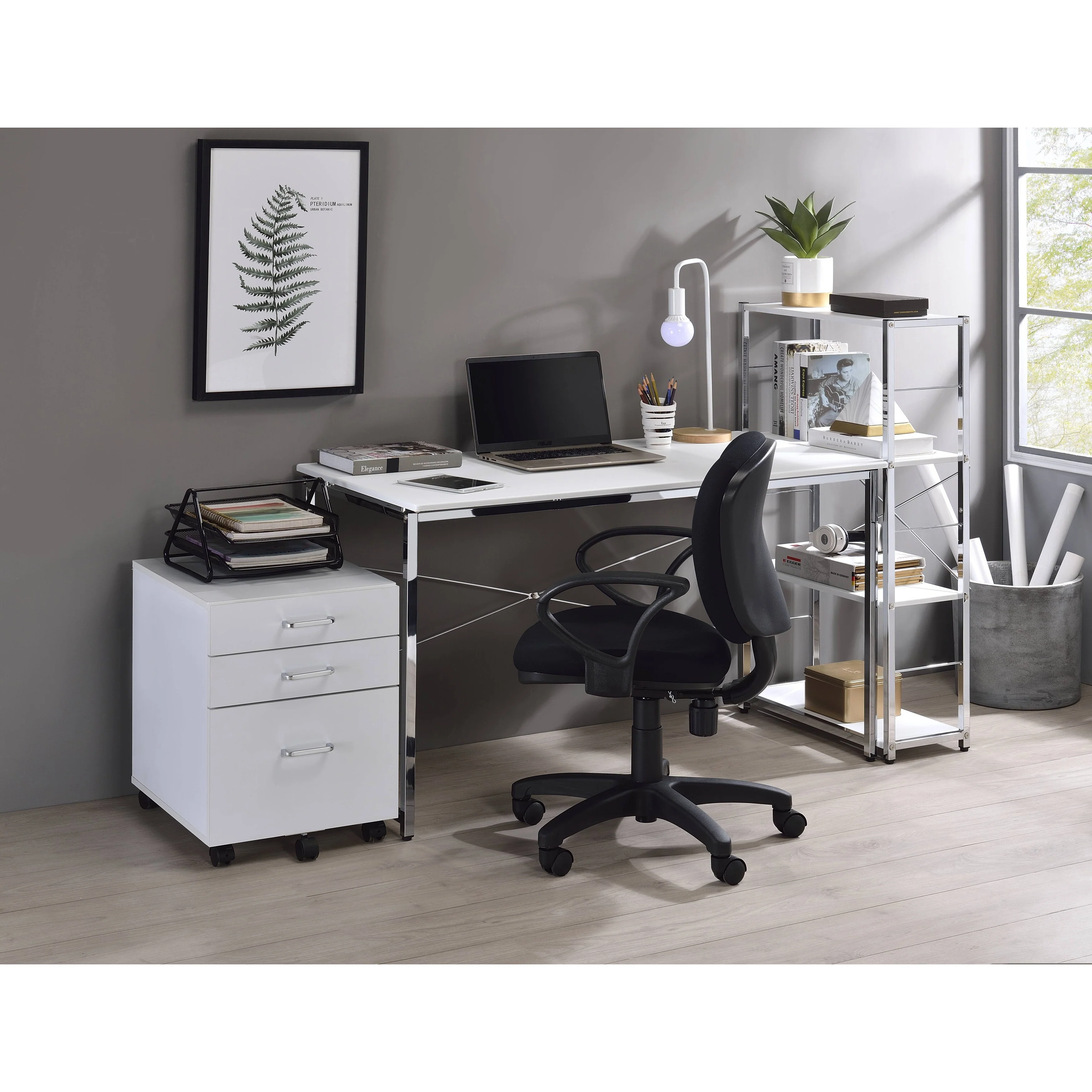 Tennos White & Chrome Finish Writing Desk