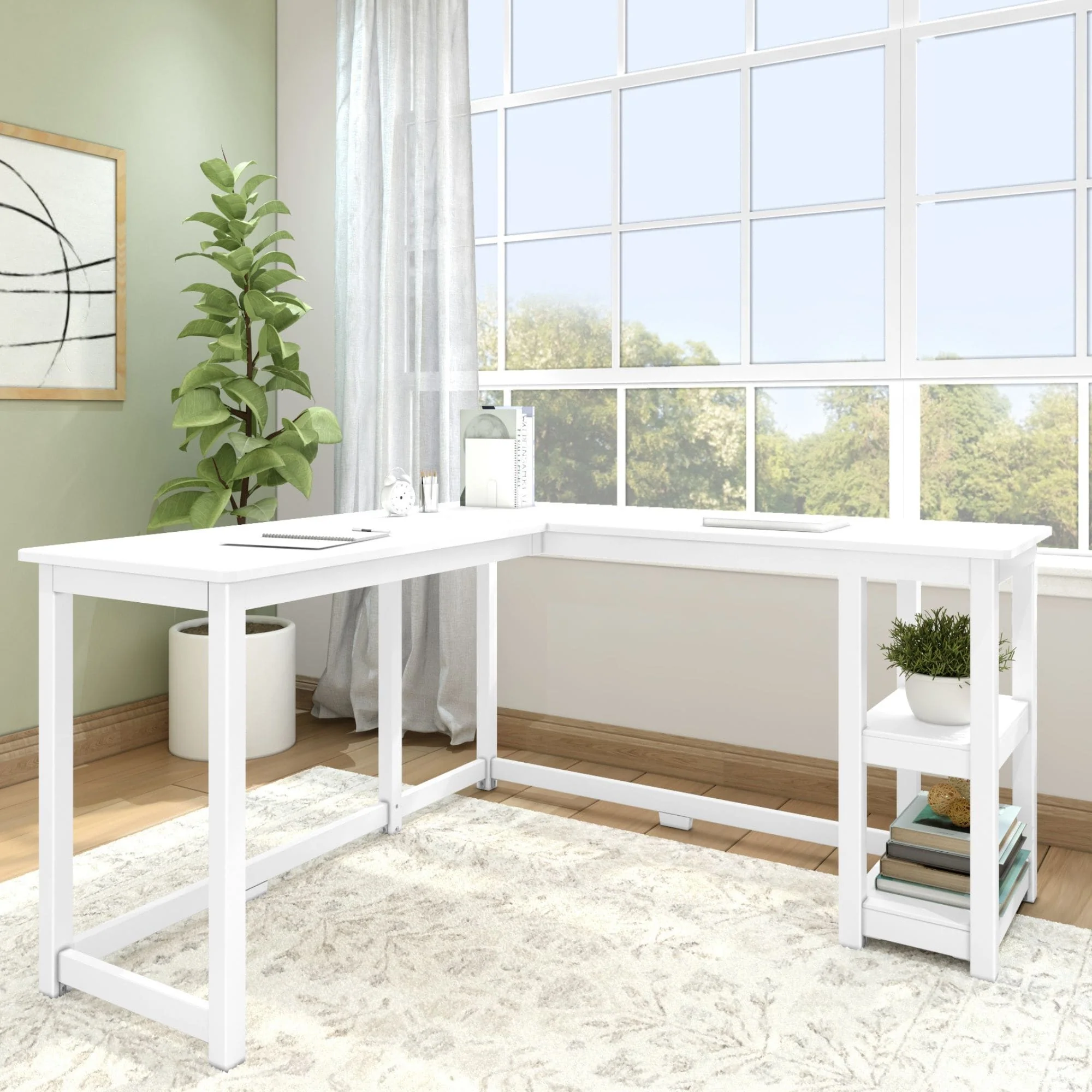 Computer Desk, Home Office, Corner, Storage Shelves