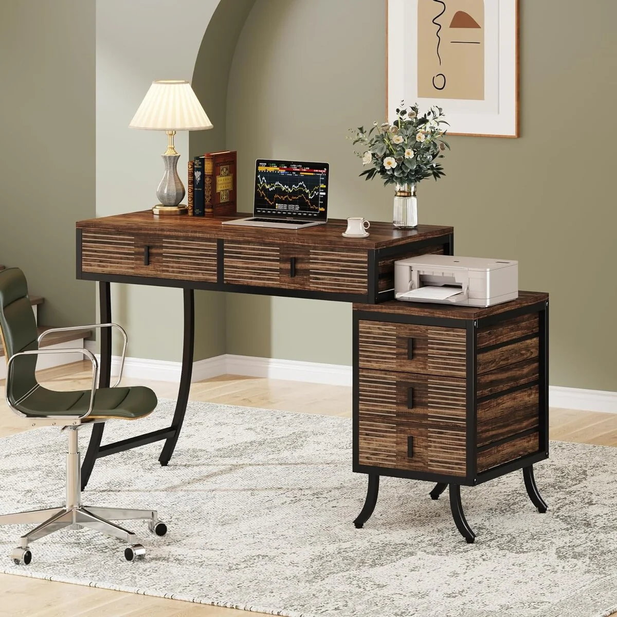 Glass Top Desk with Pedestal Metal Frame - Home Office Furniture
