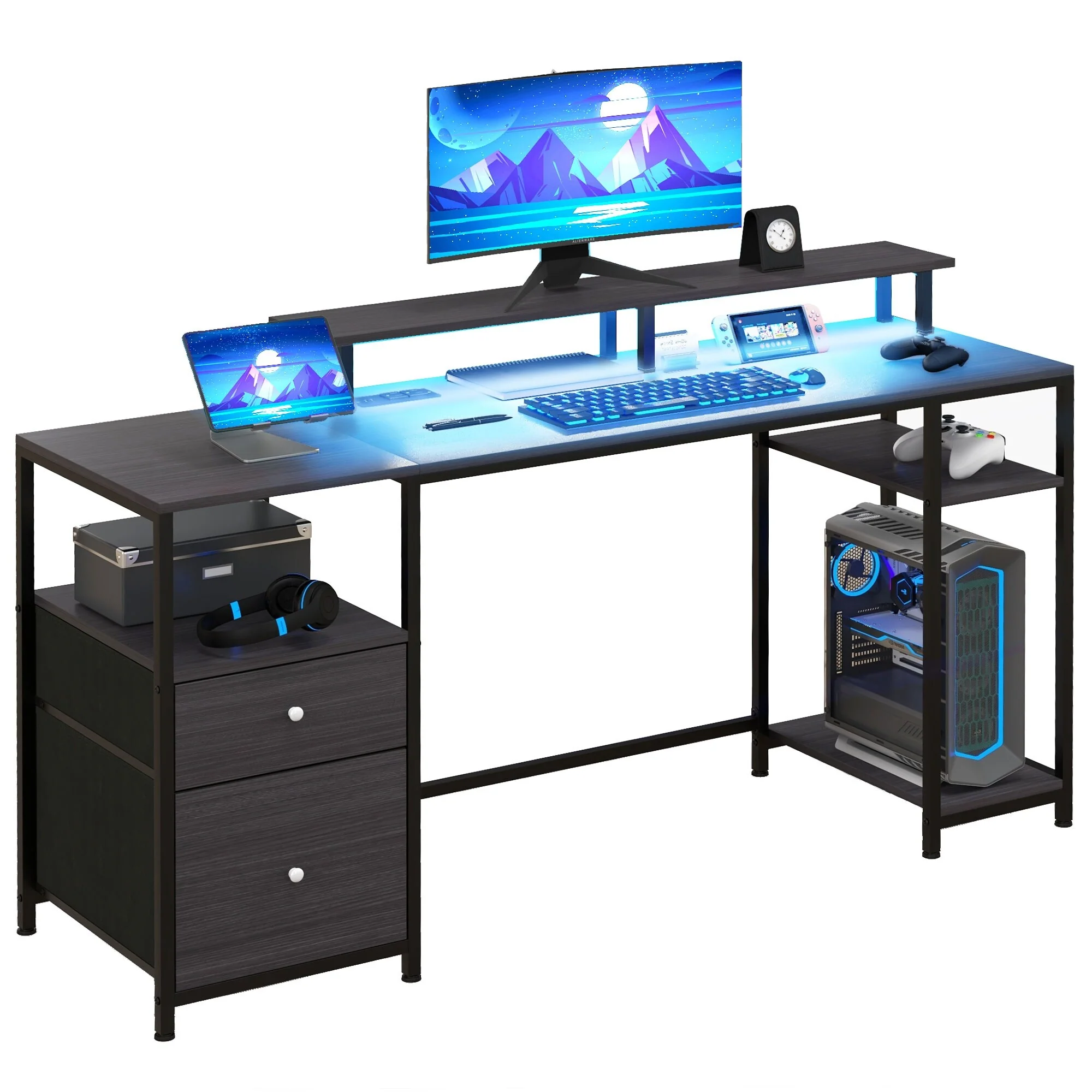 61 Computer Desk with LED Lights, Power Outlets, and USB Ports