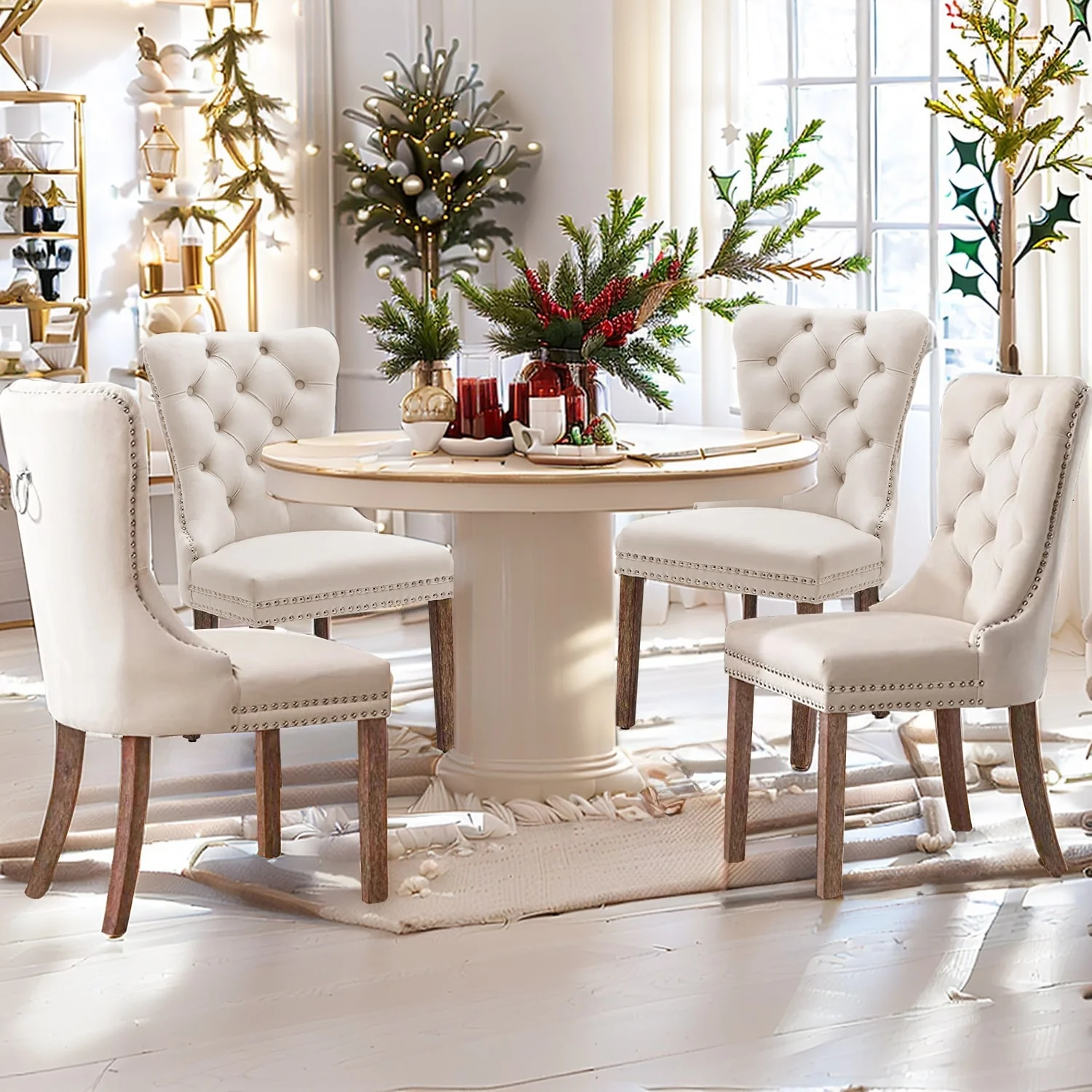 Beige Velvet Dining Chairs Set of 2,only chairs