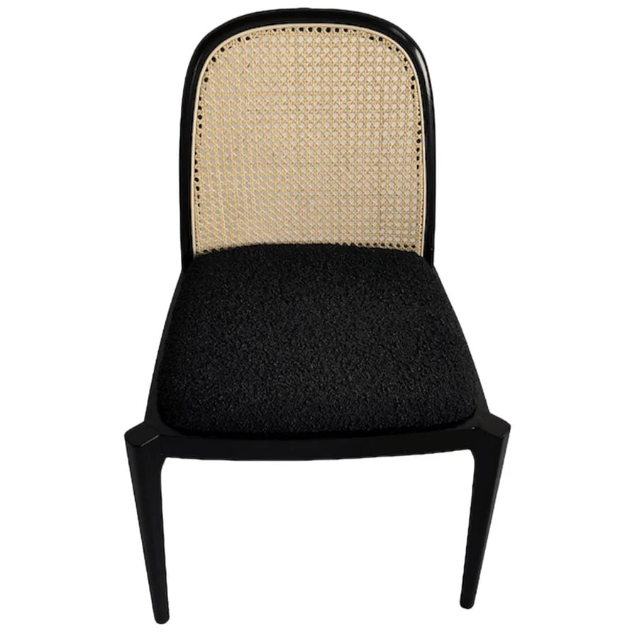 Beechwood Solid Wood Black Boucle Cane Dining Chair