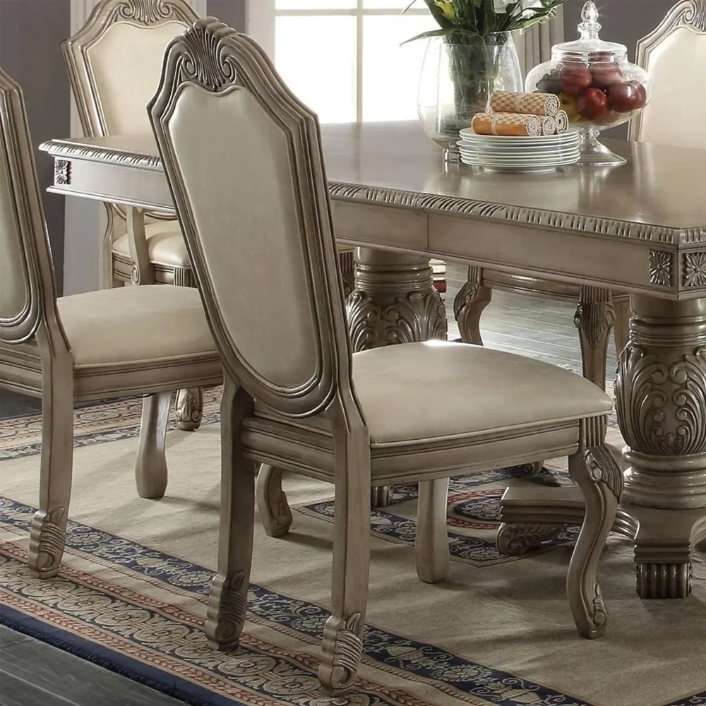 Chateau de Ville Side Chair (Set-2) in PU & Antique White