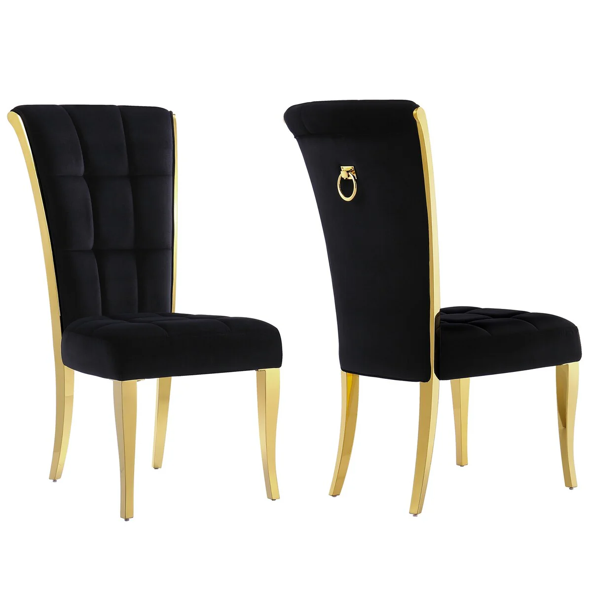 Black Velvet Upholstered Dining Chairs with Gold Legs Set of 2