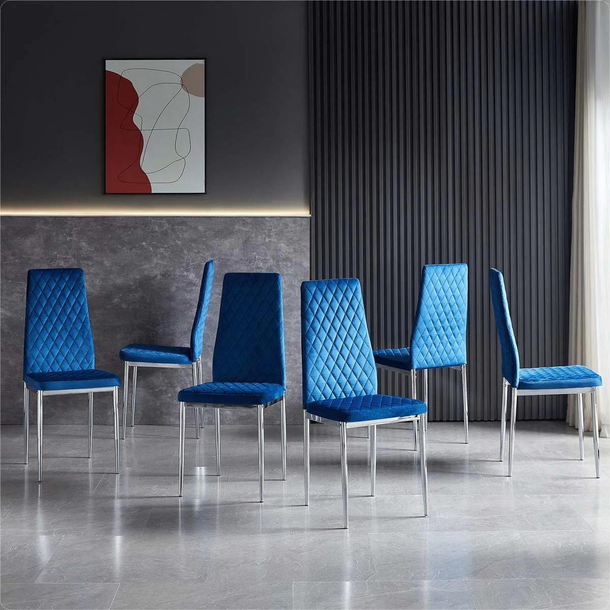 Modern Fabric chrome metal dining chair set of 6