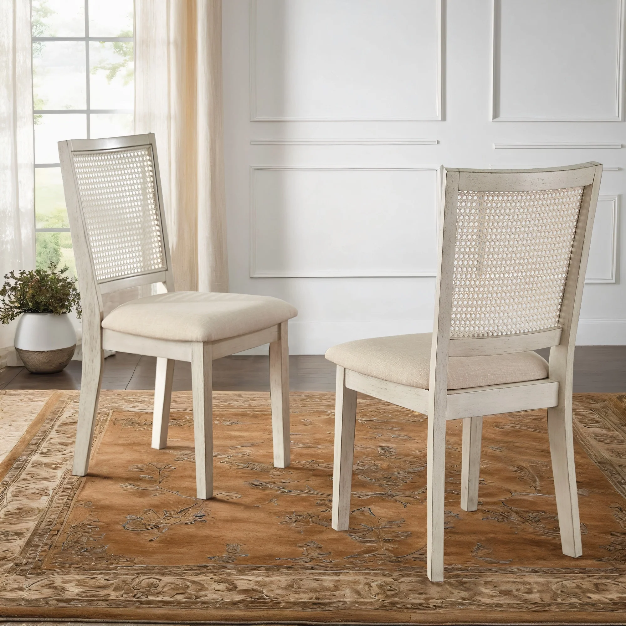 Ronda Beige Linen Rattan Back Dining Chairs (Set of 2)