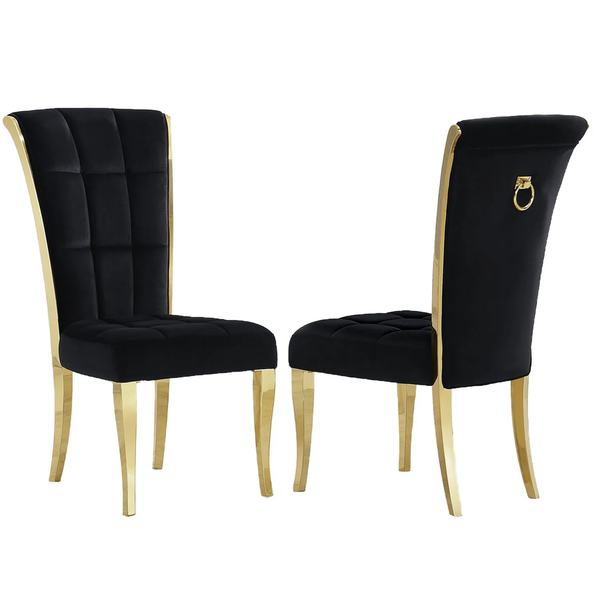 Black Velvet Dining Chairs with Pull Ring on Back and Metal Legs