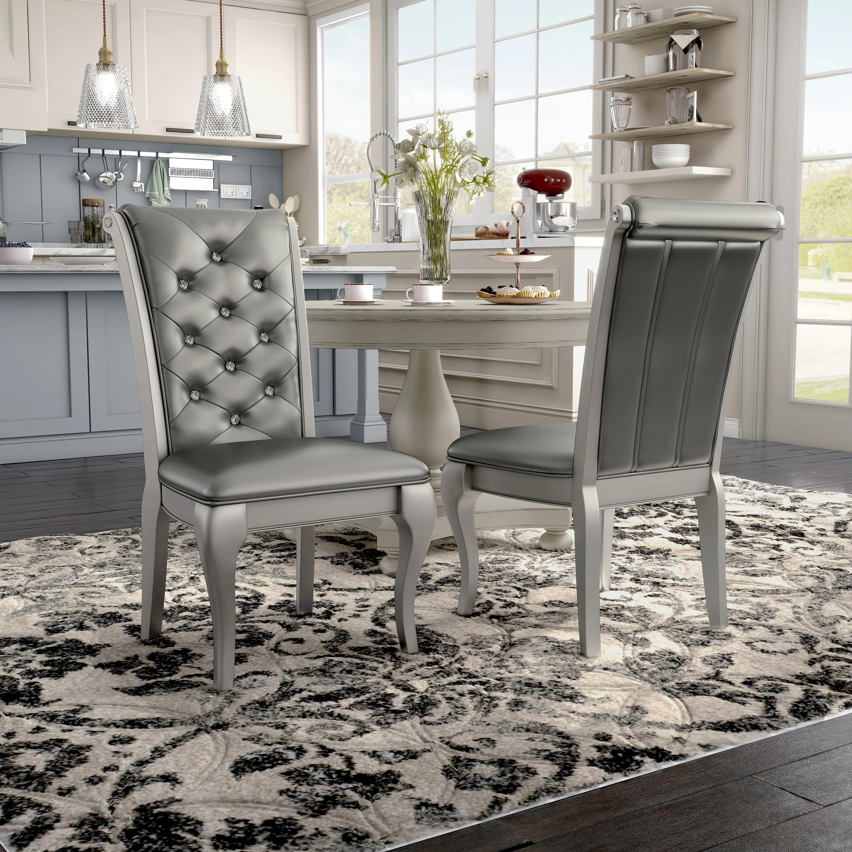 Plovdiv Linen Curved Back Tufted Dining Chairs (Set of 2)