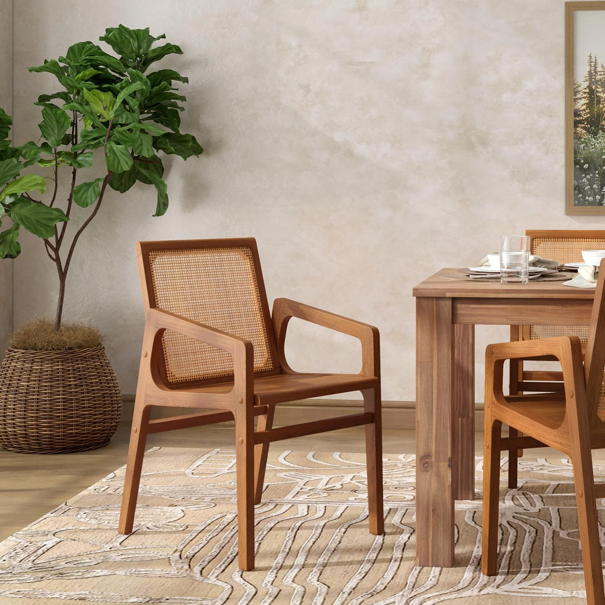 Woven Rattan Dining Chair Set of 2