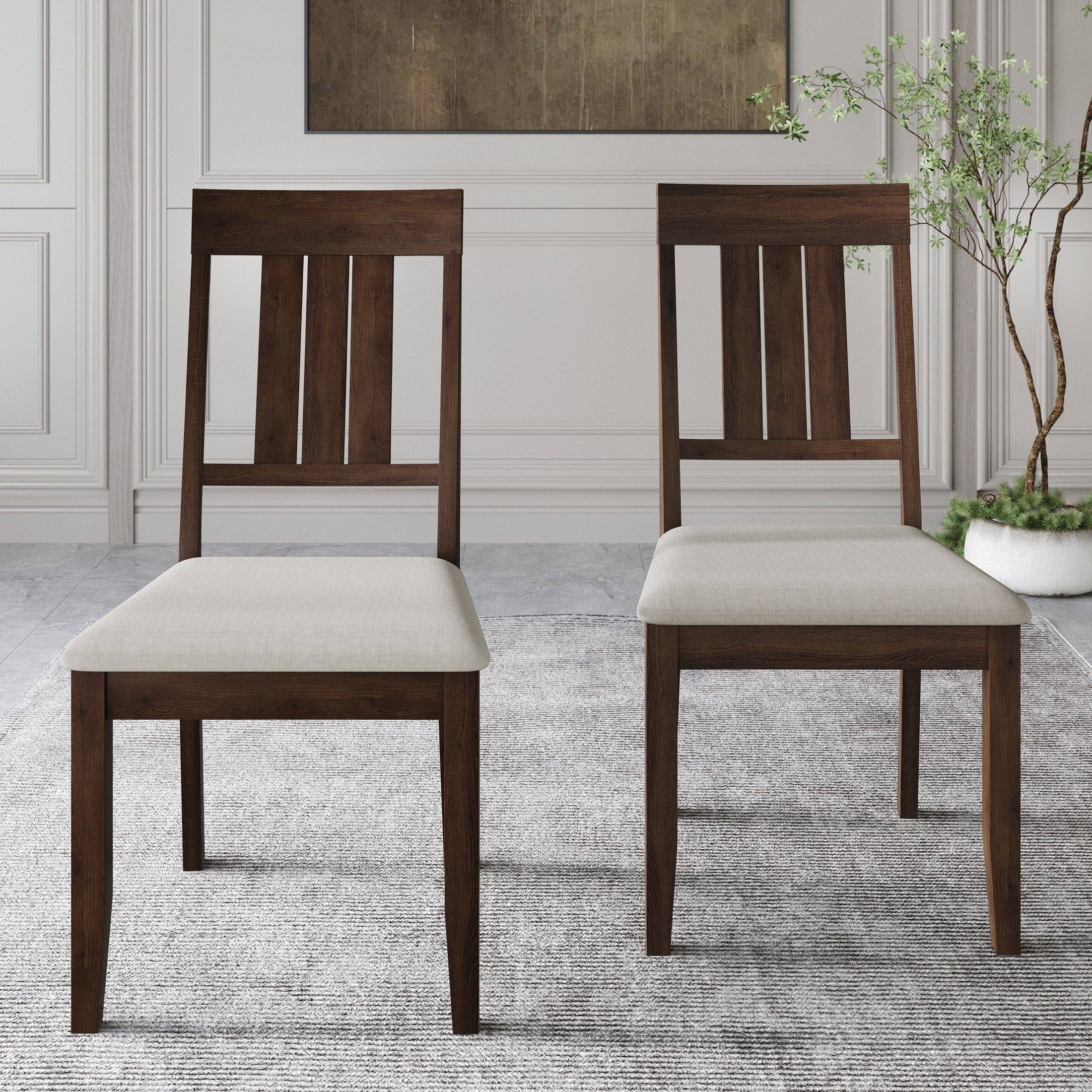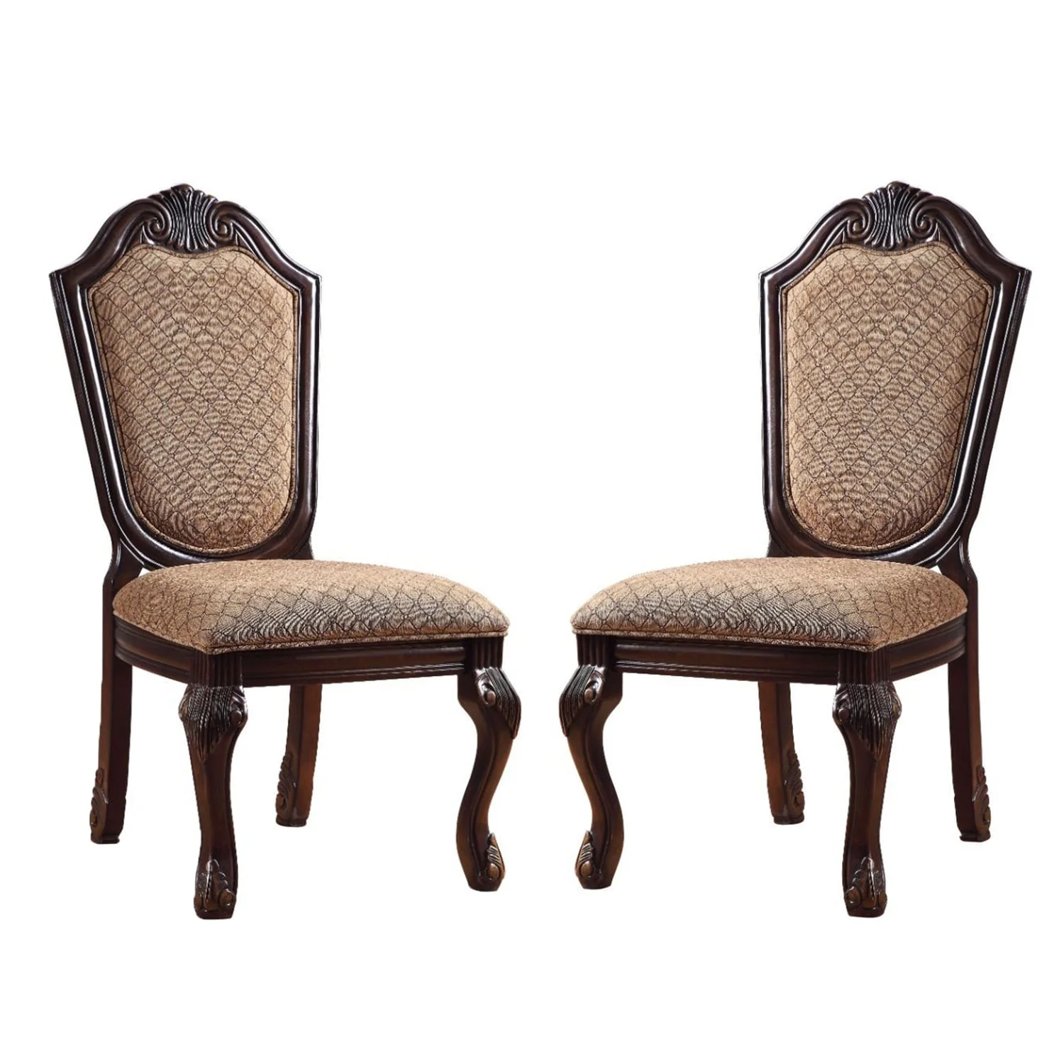 Set of 2 Upholstered Side Chair in Brown and Espresso Finish
