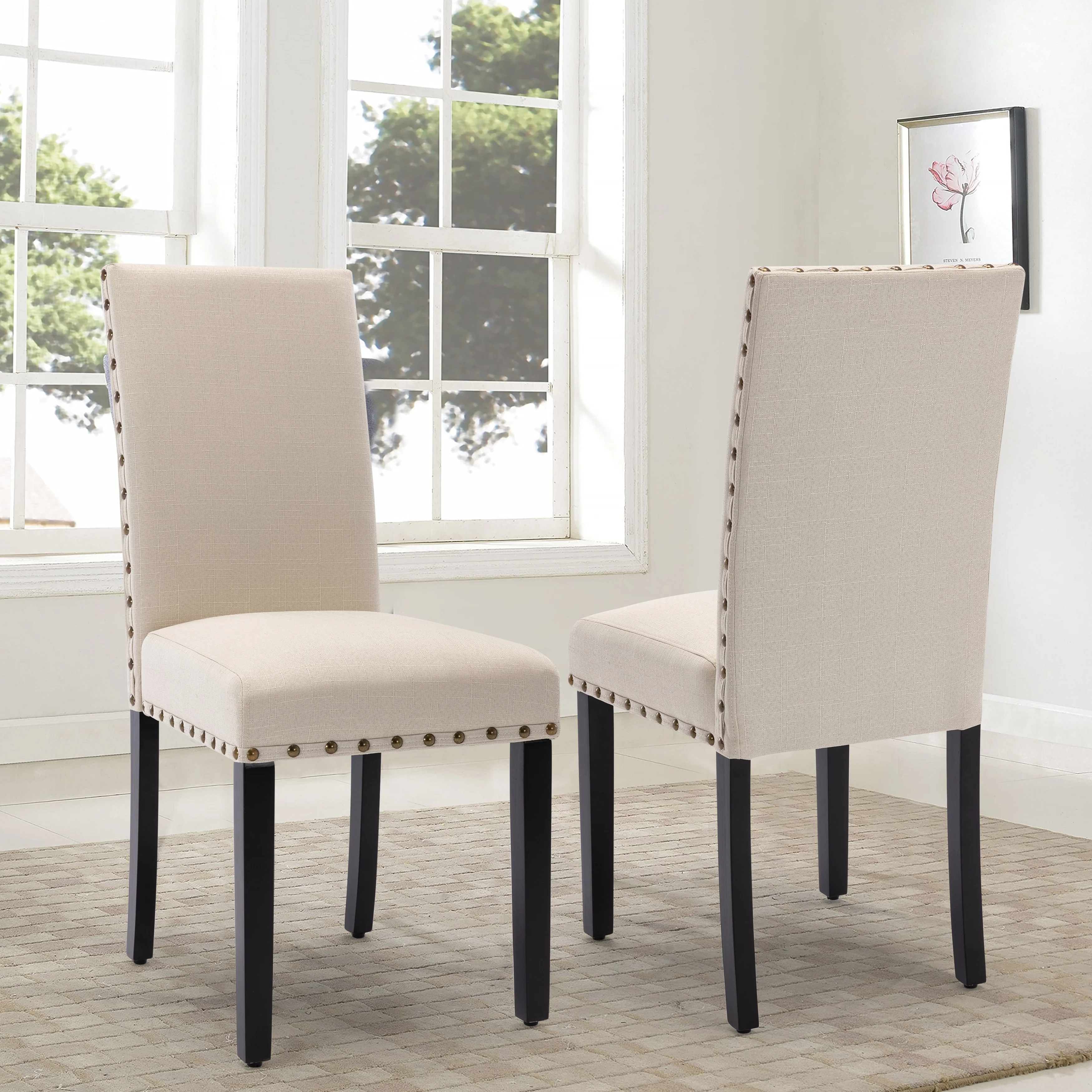 Fabric Upholstered Nailhead Trim Parsons Dining Chairs Set of 2