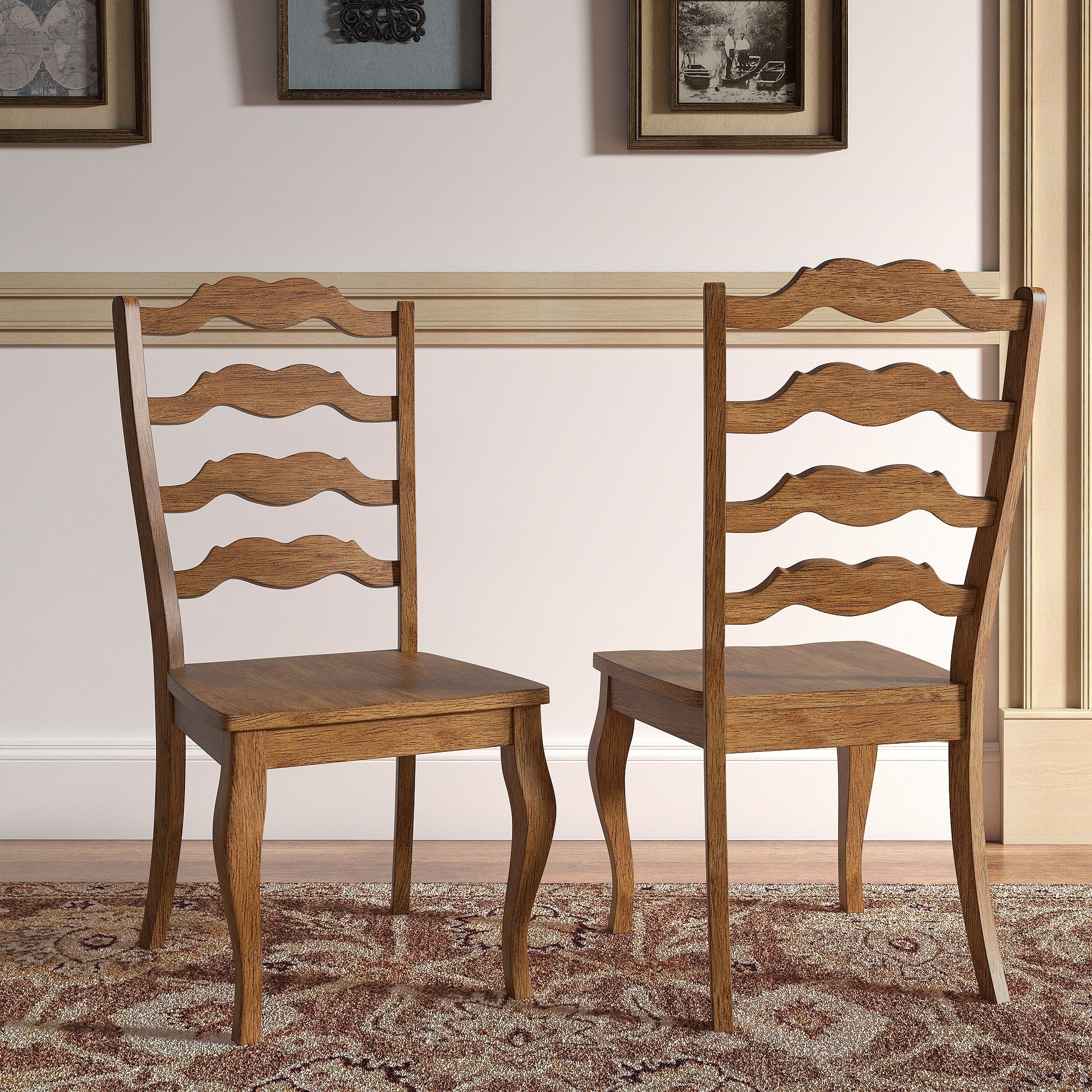 Ronda French Ladder Back Wood Dining Chairs (Set of 2)