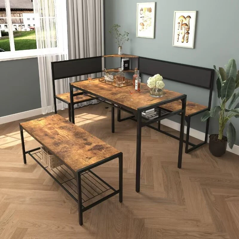 Reggie 4pc Breakfast Nook Dining Set, Storage Bench, Brown Mahogany