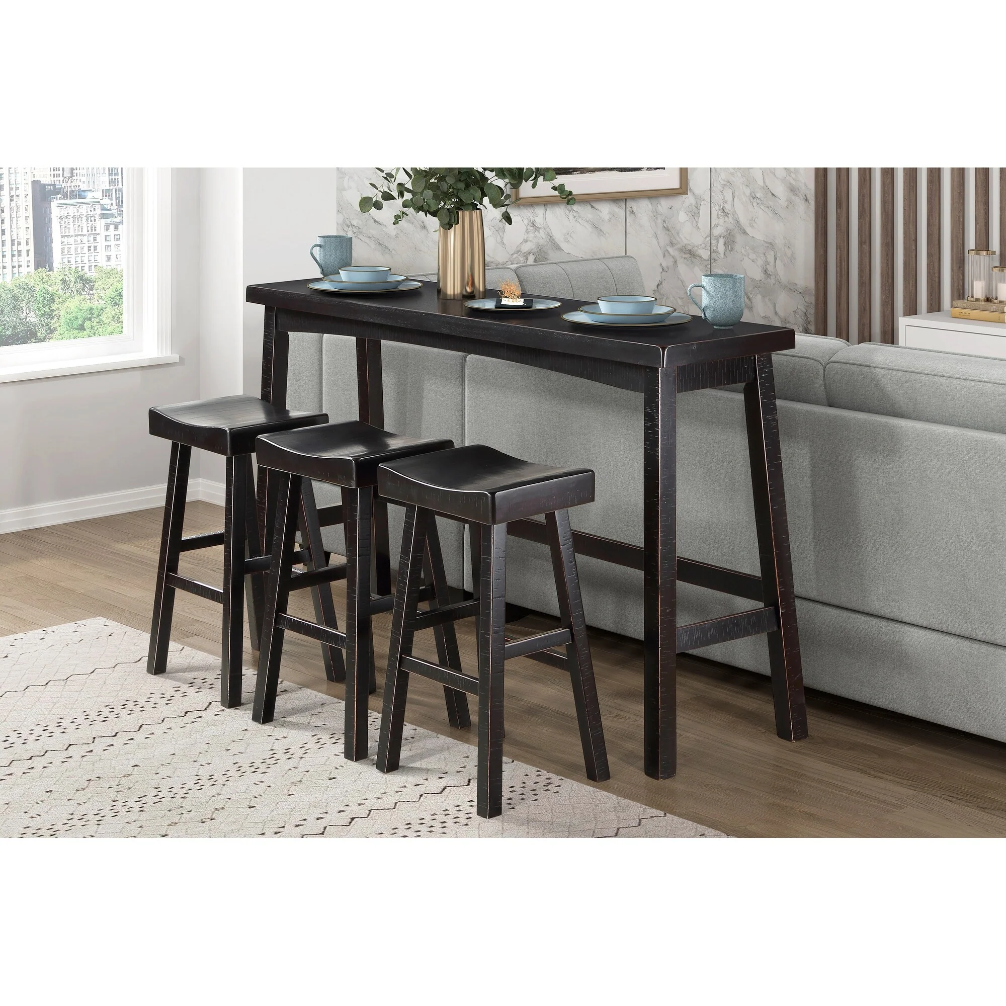 Bega 5pc Counter Height Table and Chair Set, Ivory Upholstery, Black