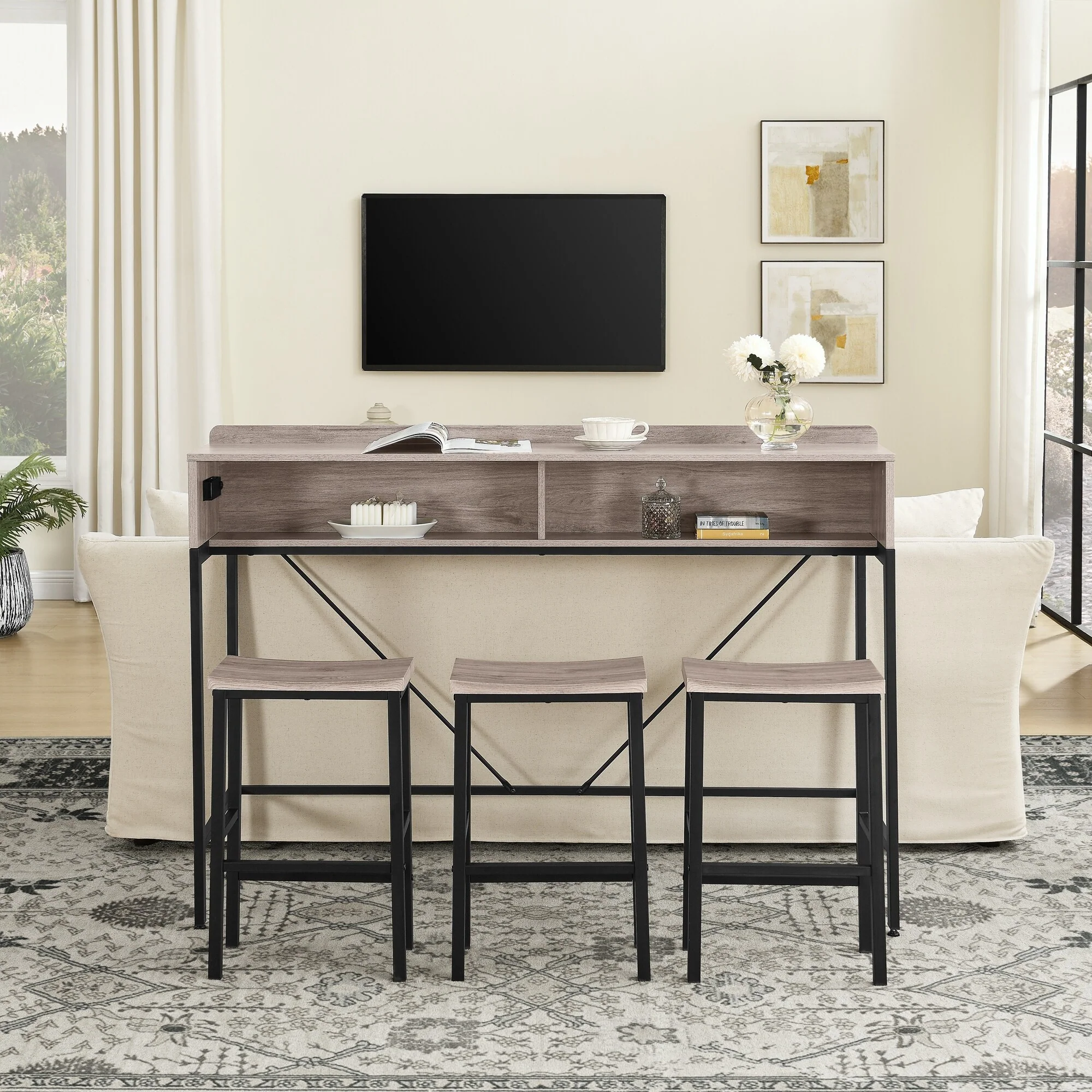 Industrial 3-Piece Metal Frame Bar Dining Set with 2 Stools