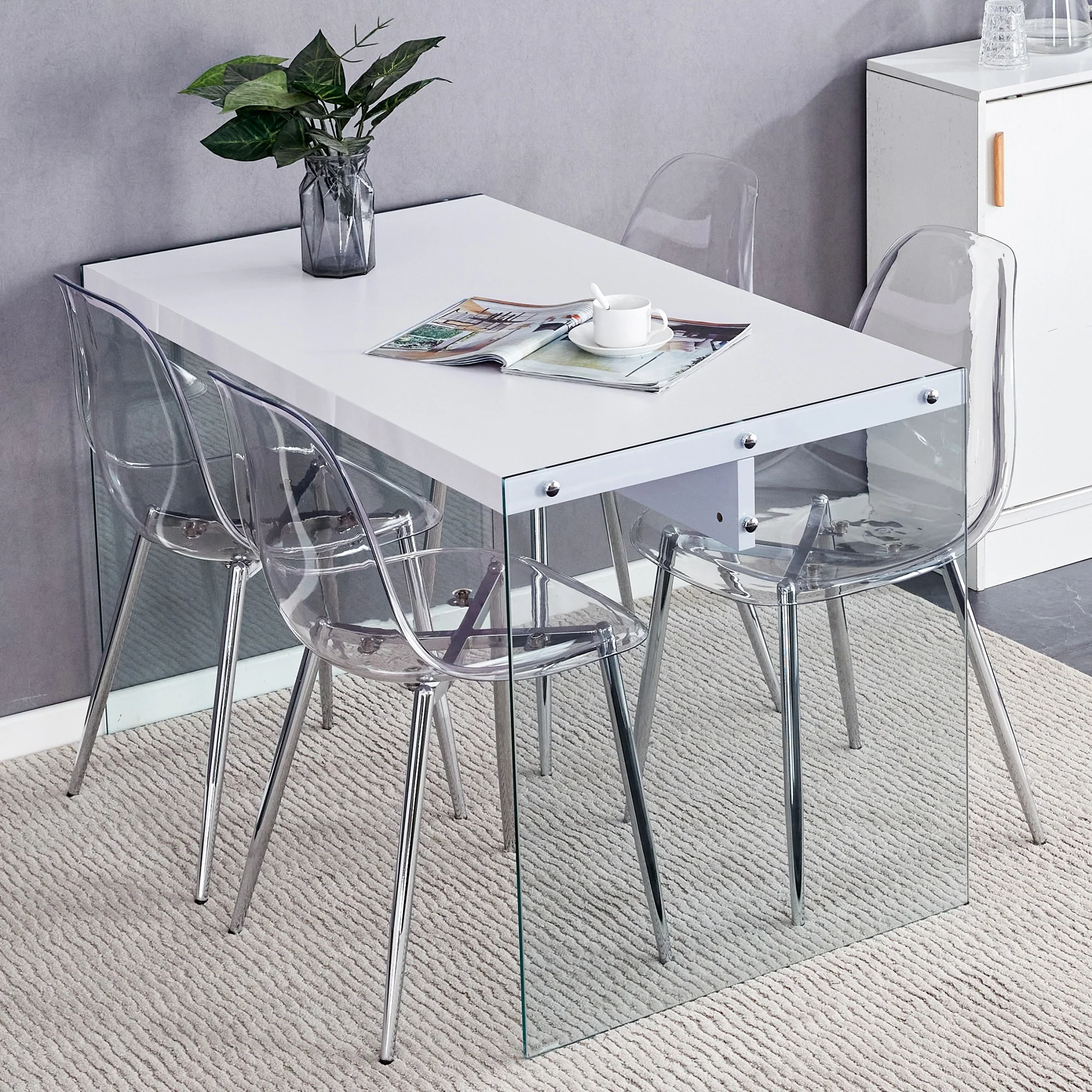 White 5-Piece Wooden Dining Table Set with 4 X-Back Chairs