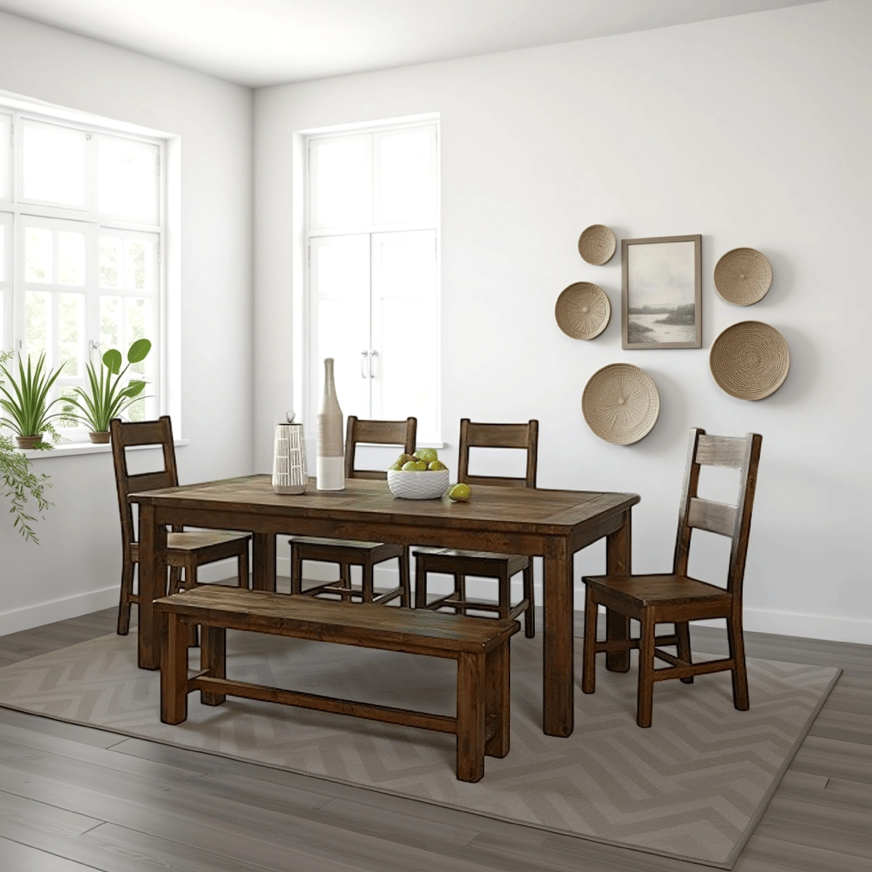6-Piece Wooden Dining Table Set with 4 Upholstered Chairs & Bench