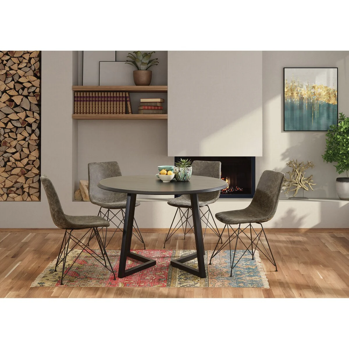5-Piece 45 Round Dining Table with Faux Leather Dining Chairs