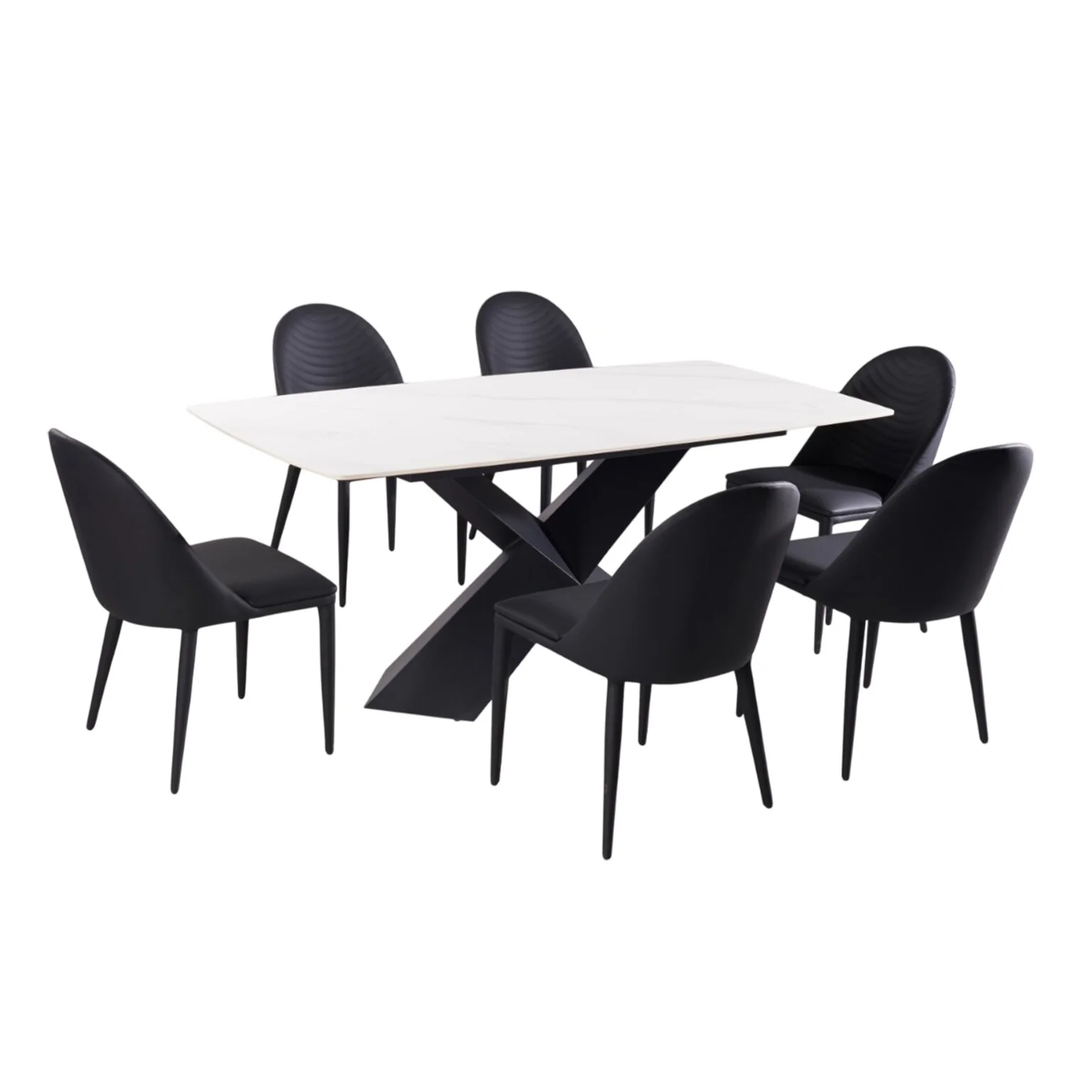 7 Piece Dining Set with Metal Legs in Black and White