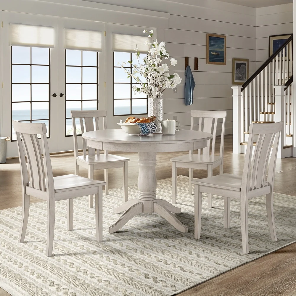 5-Piece Dining Set, 42 Round Pedestal Table and Spindle Chairs