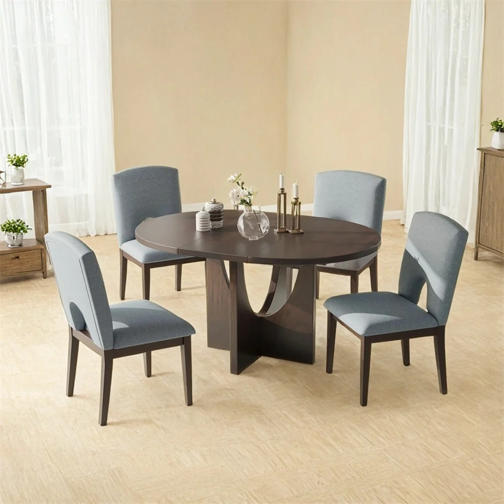 5-Piece Dining Round Extendable Table Set with 4 Chairs