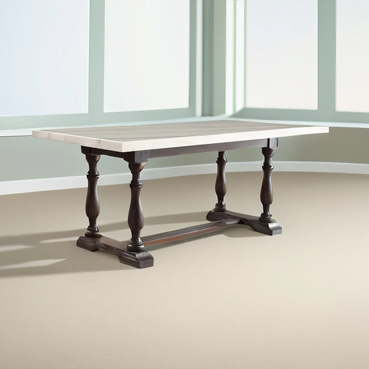 3-Piece Industrial Style Dining Table & Bench, Marble Veneer
