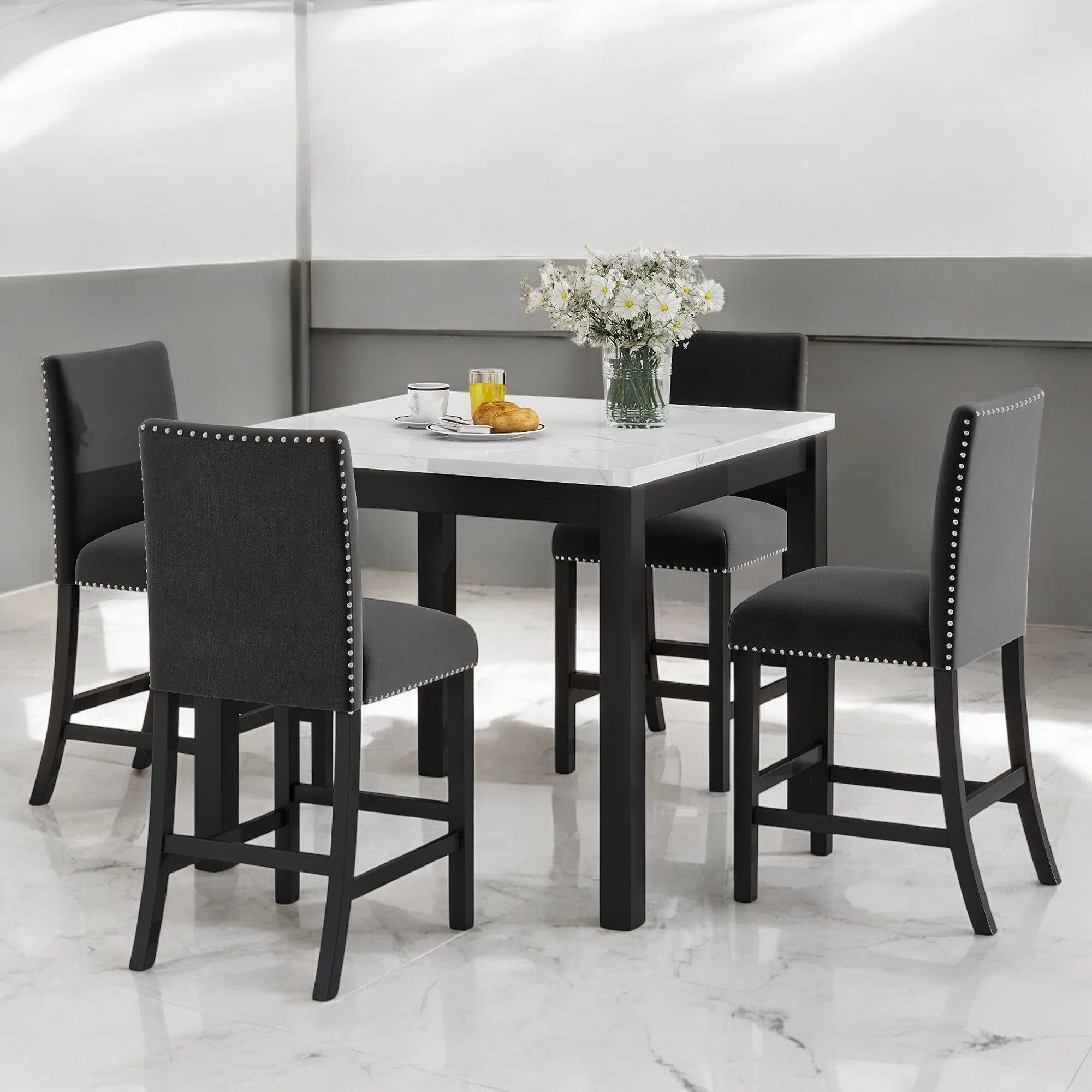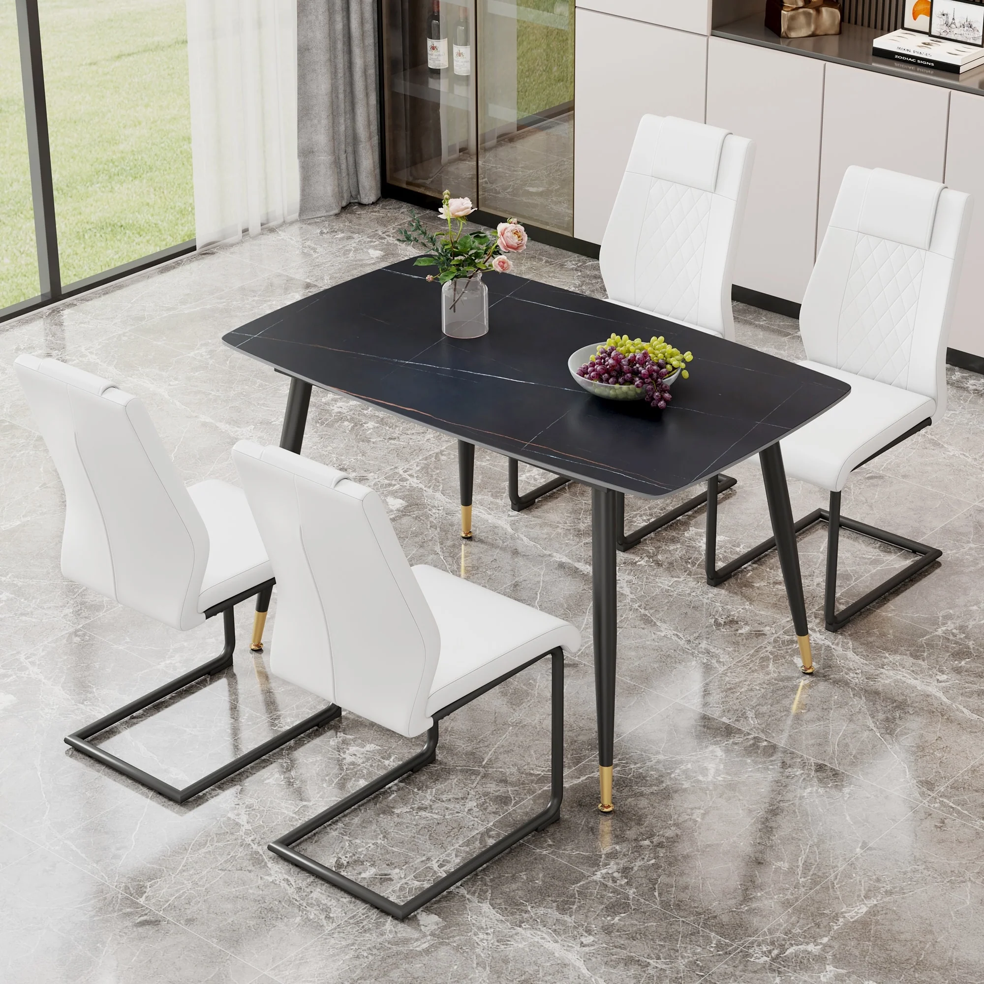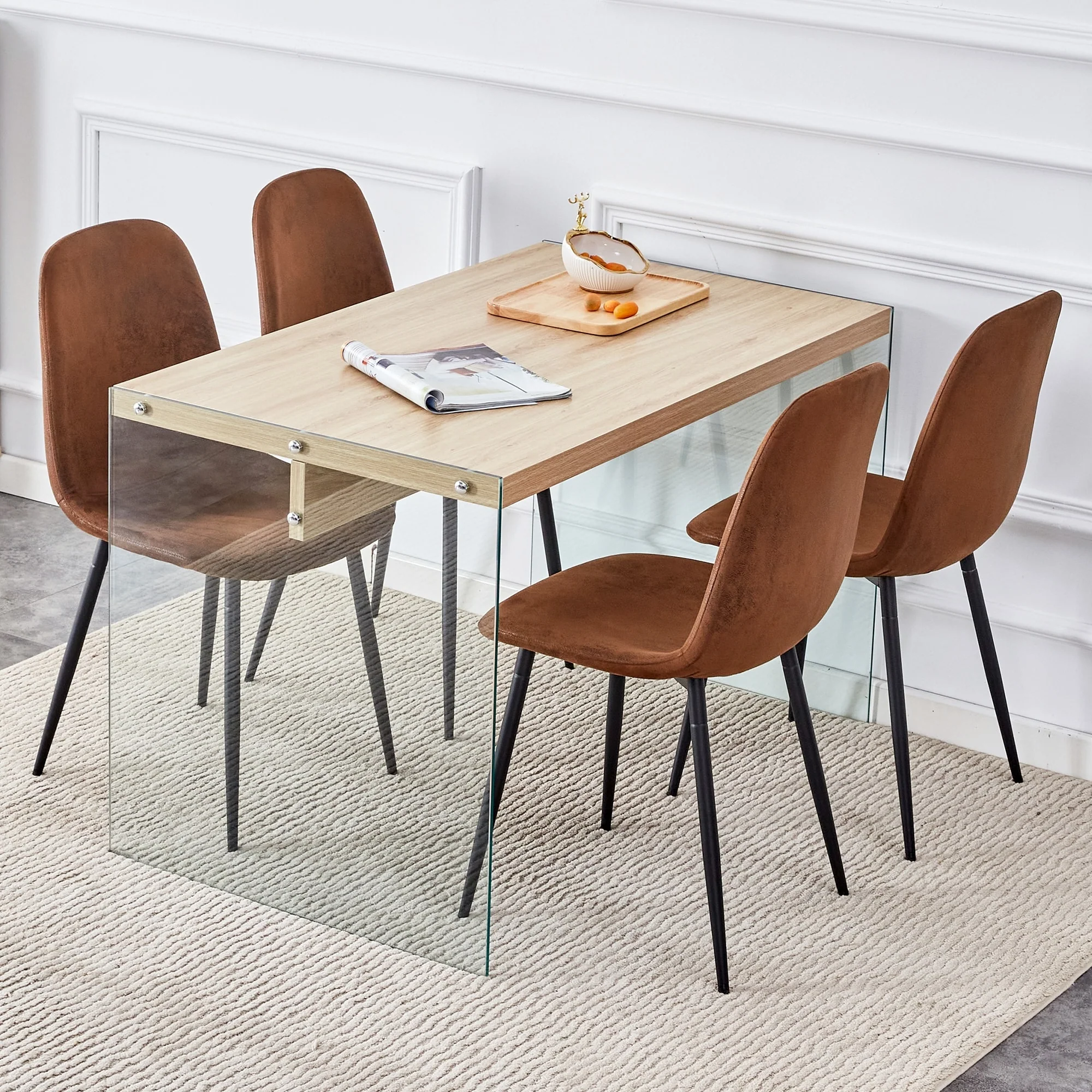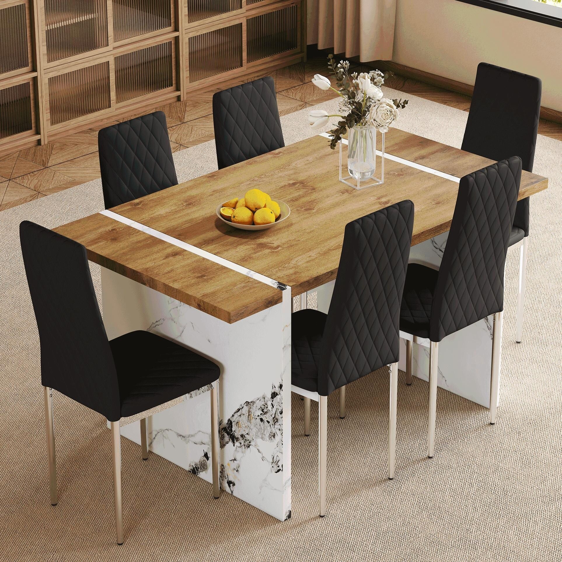 Modern Dining Set - Wood Look Table & Waterproof PU Chairs