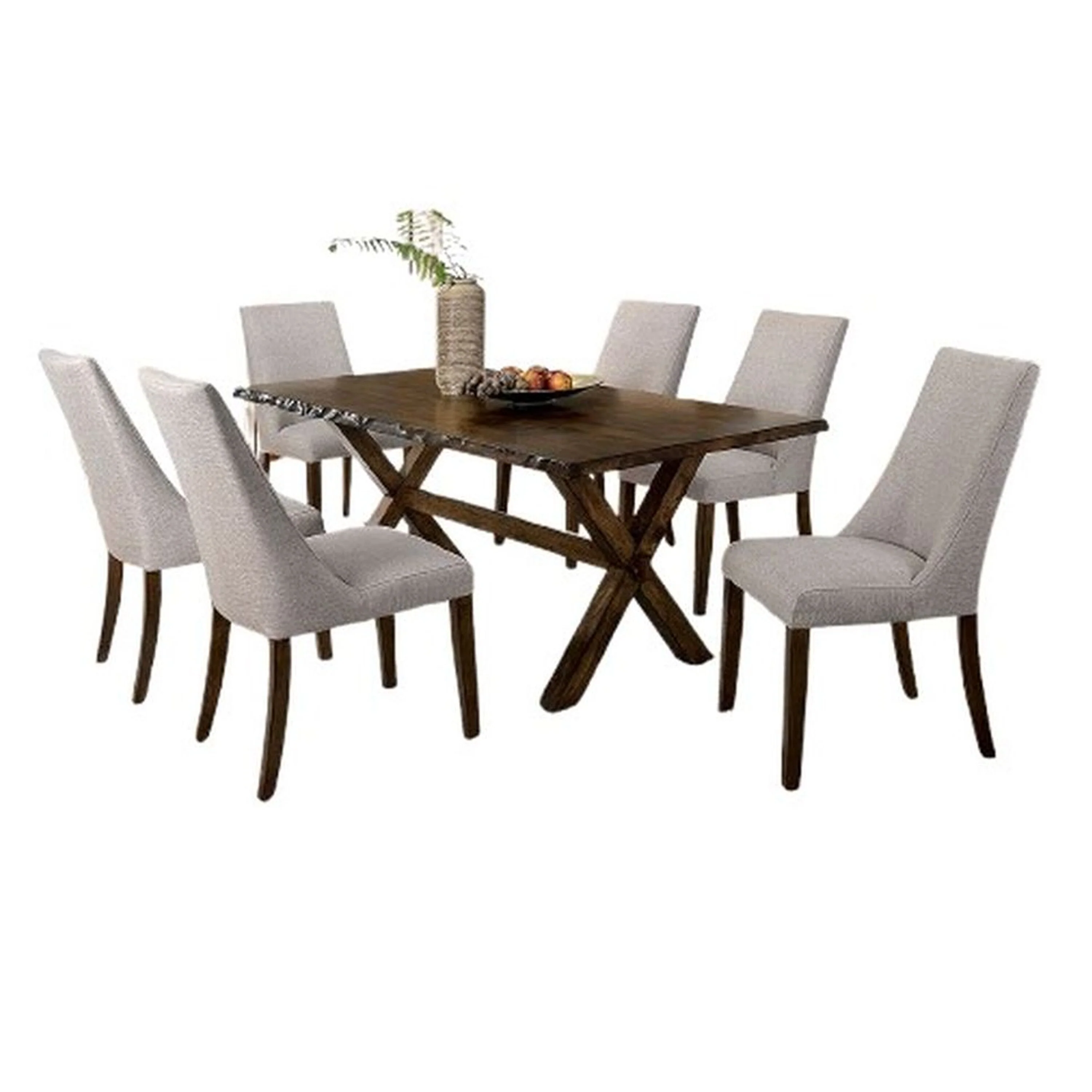 Aliza 7pc Dining Table Set, 6 Gray Chairs, Walnut Brown Solid Wood