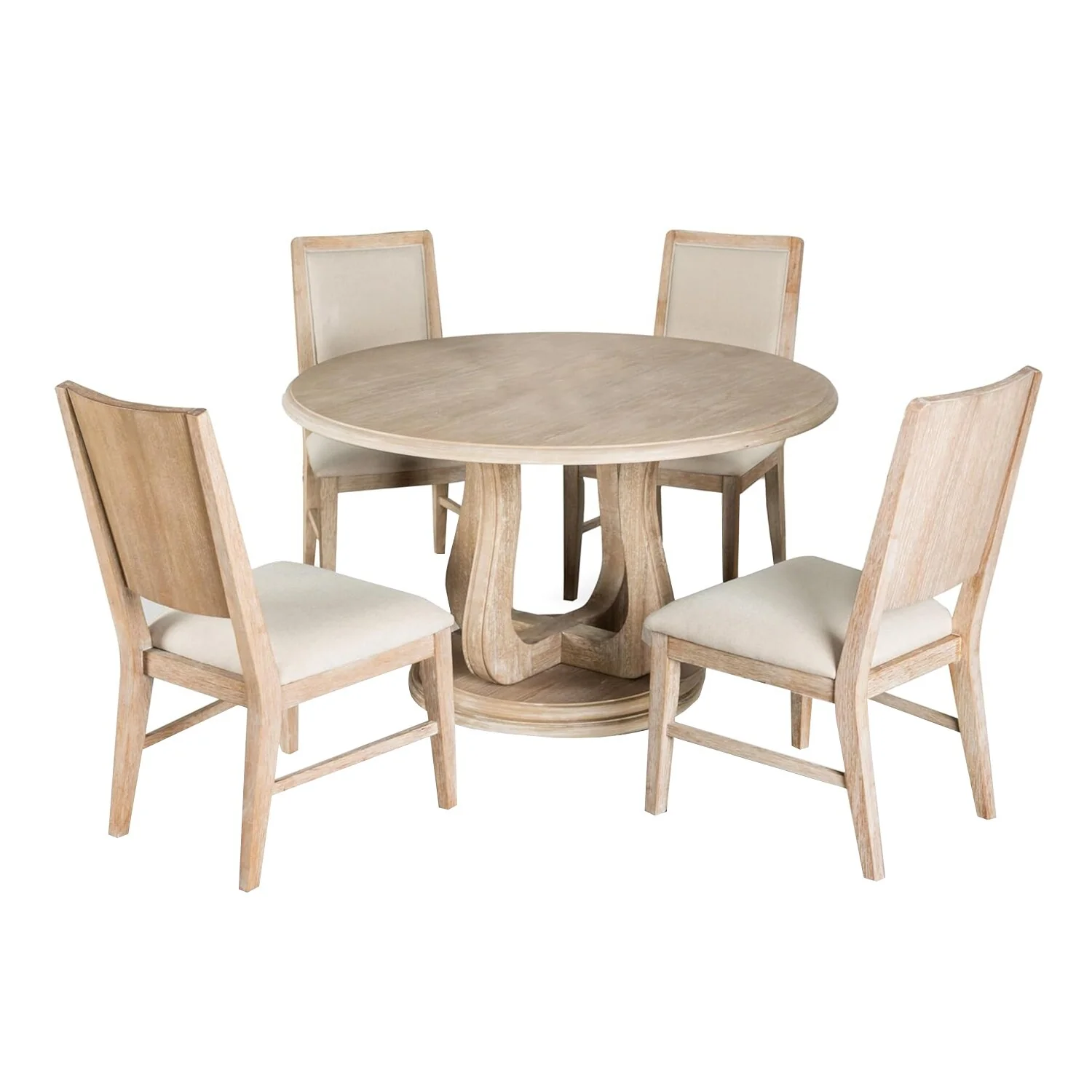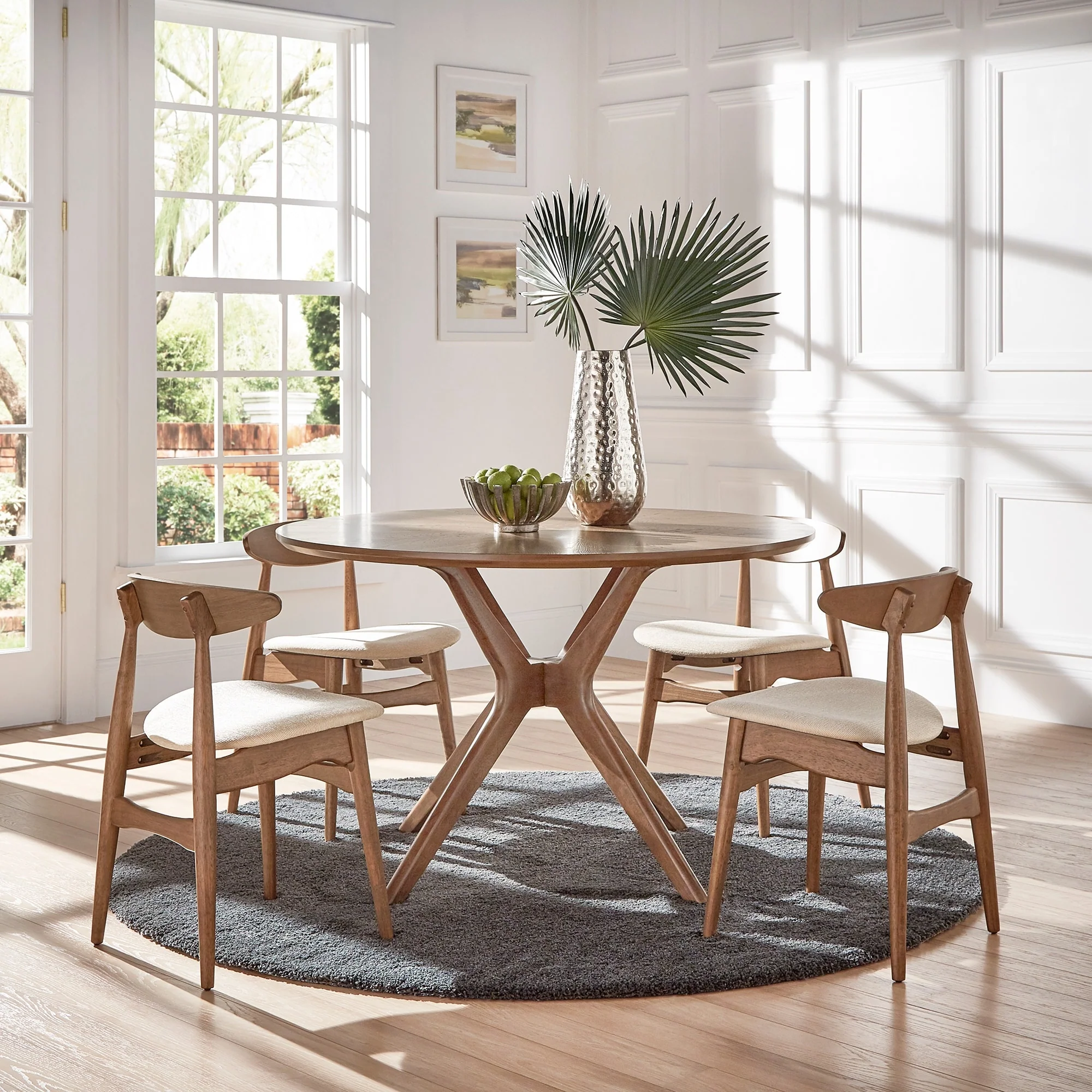 Sylvestria Mid-Century Walnut Finish Round Dining Set