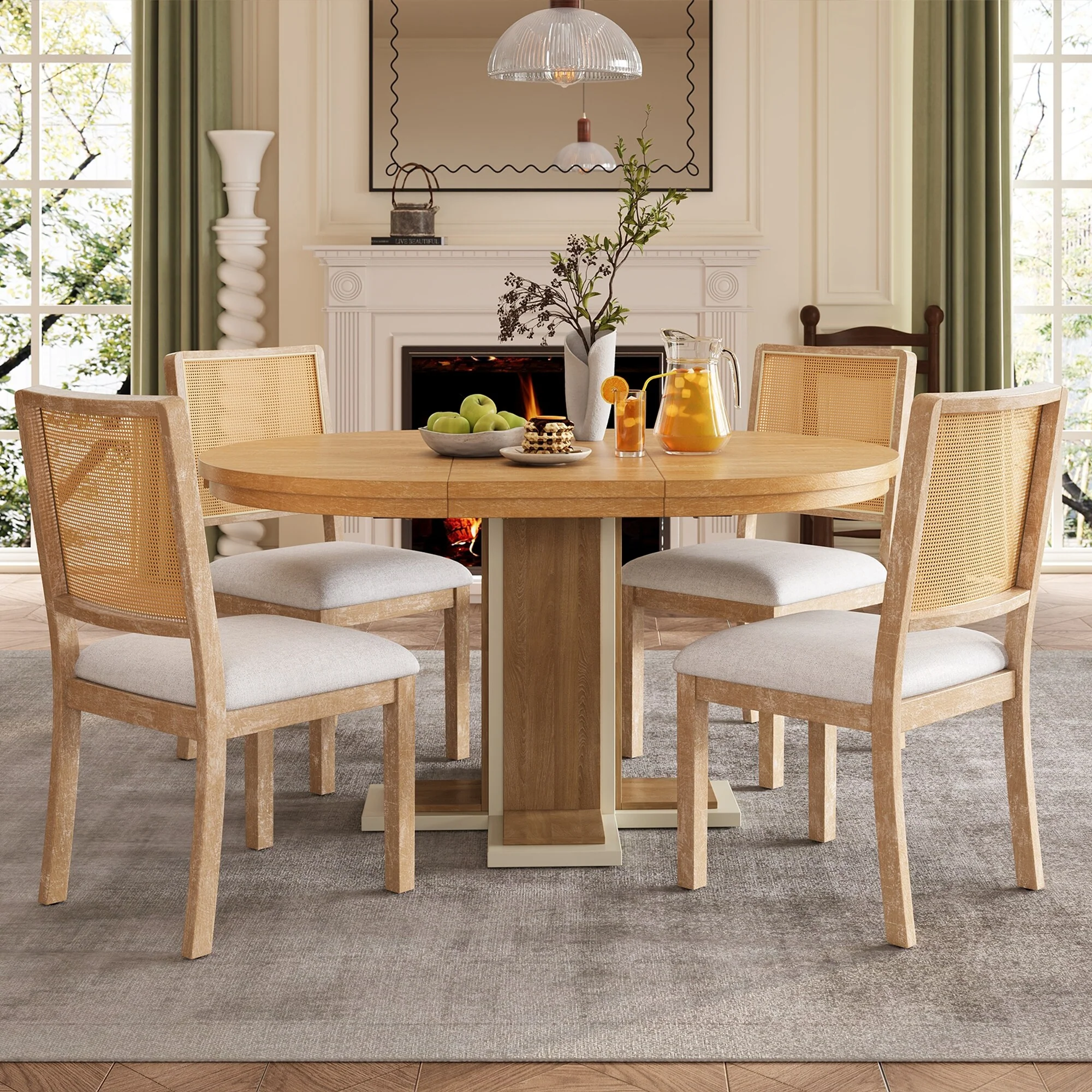 60-78 Expandable Dining Table Set - Rubberwood Legs
