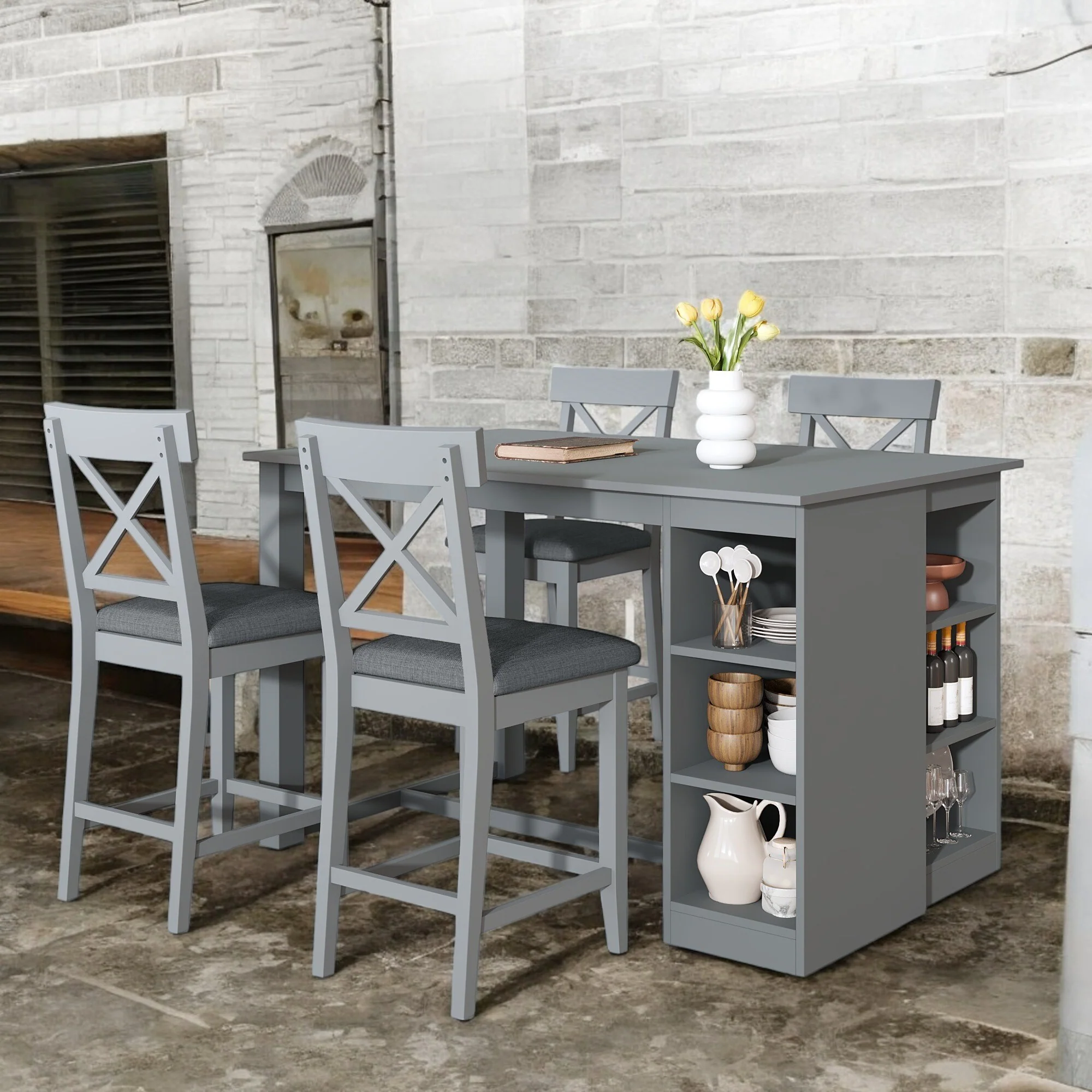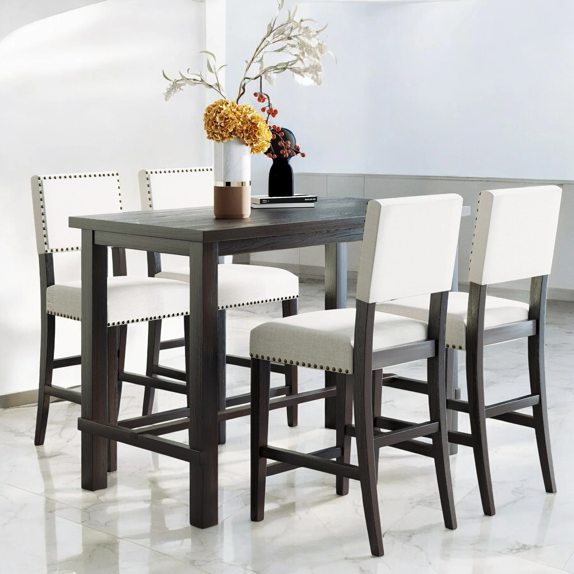 Farmhouse Walnut Solid Wood 5-piece Dining Table Set