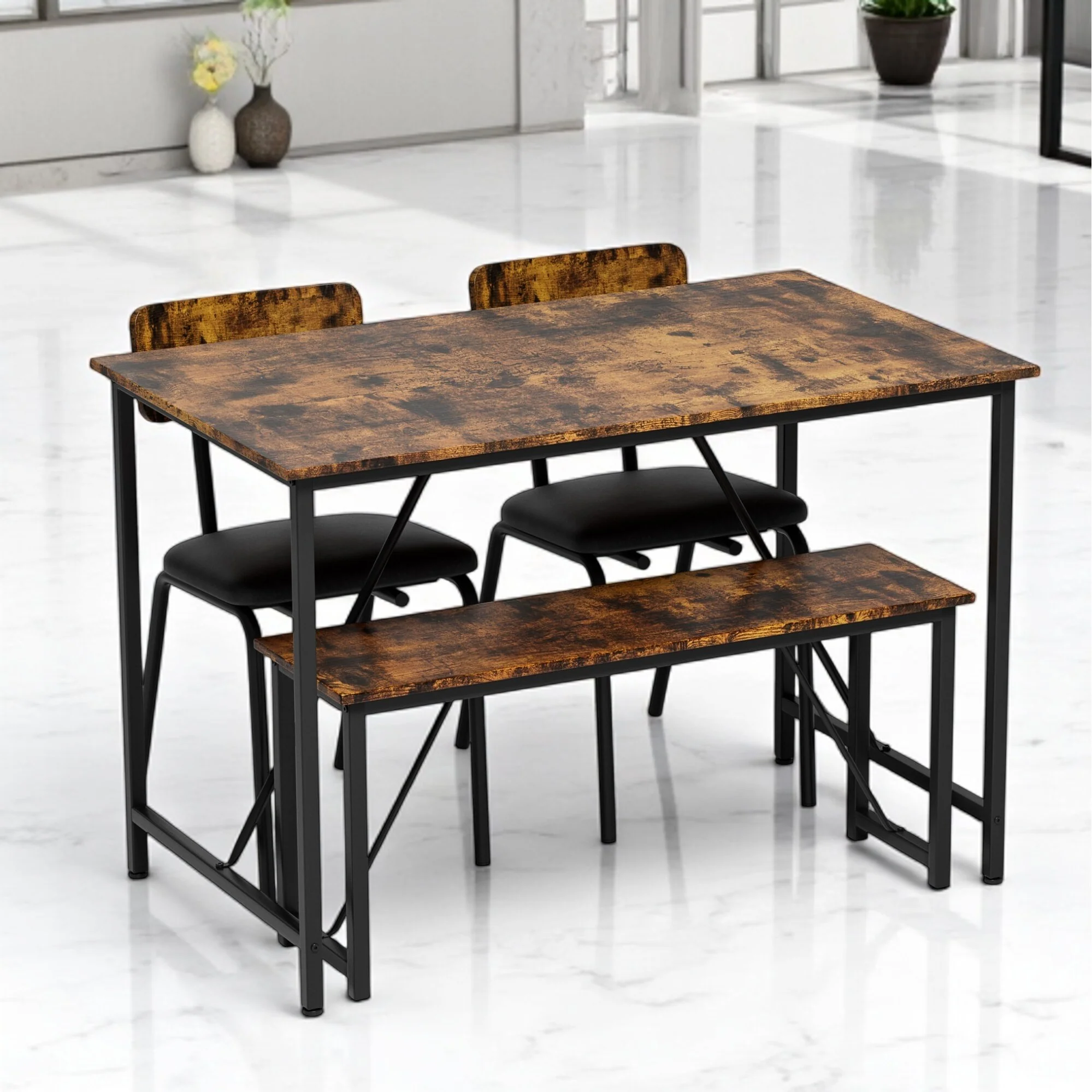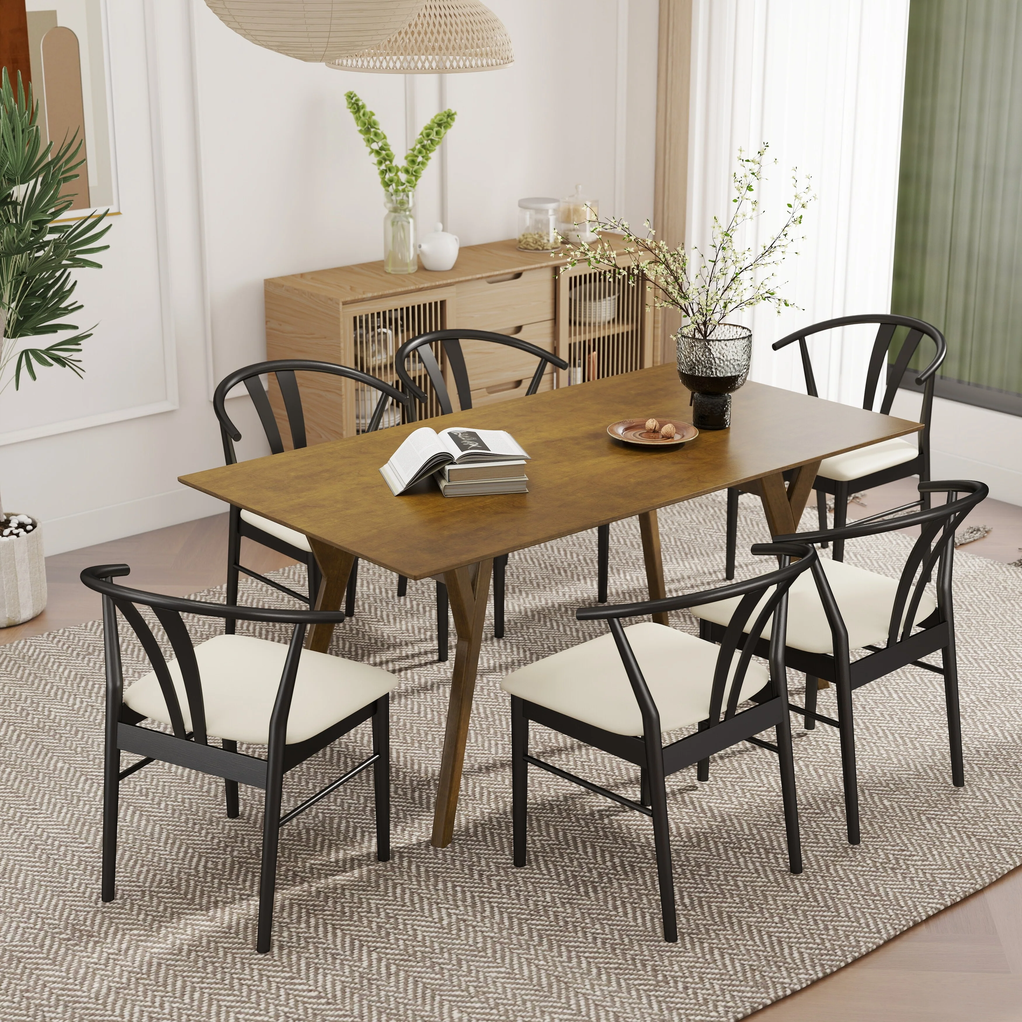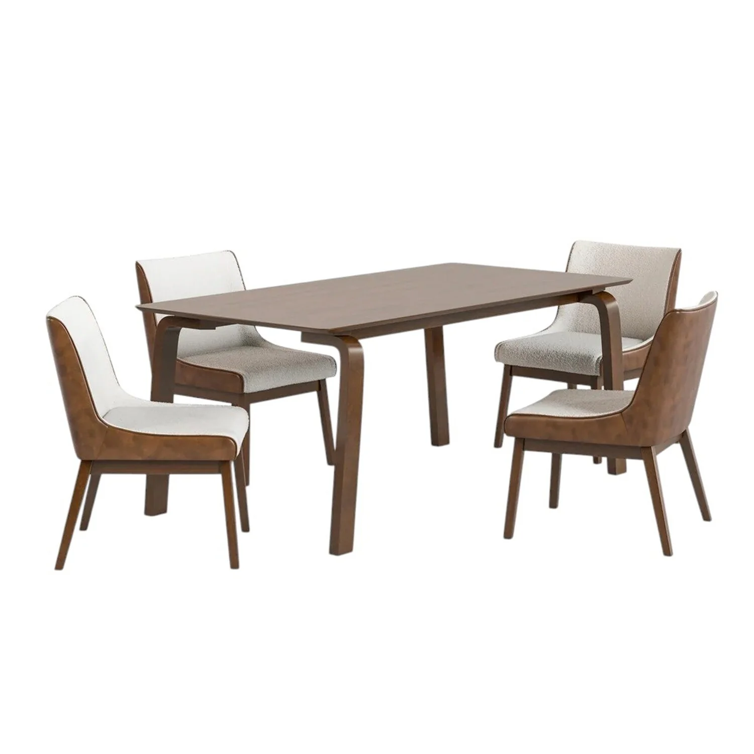 Rectangular Wooden Dining Set with Padded Seats in Walnut and Beige