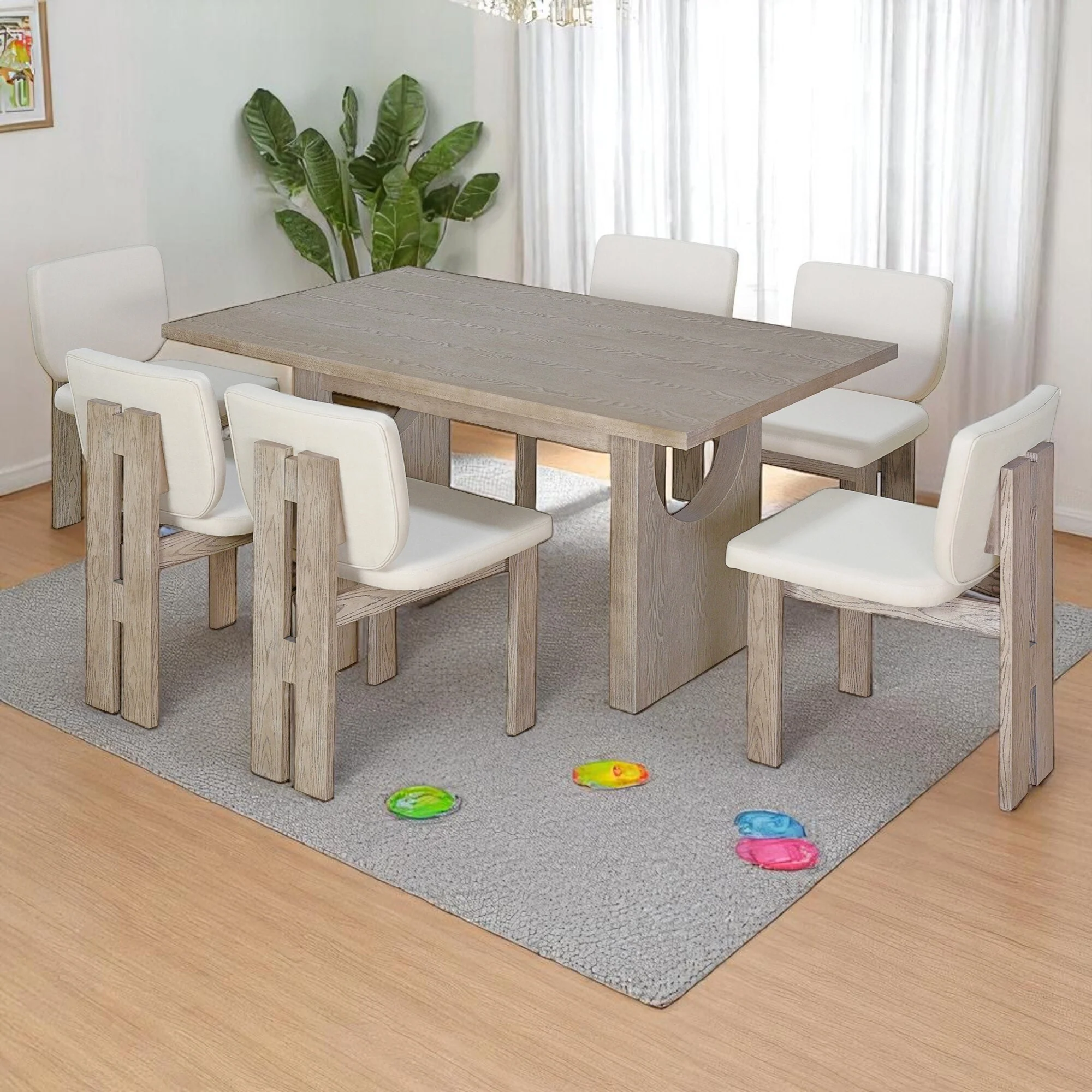 Mordy 7pc Dining Table Set, 72-90 Inch Expandable Leaf, 6 Chairs
