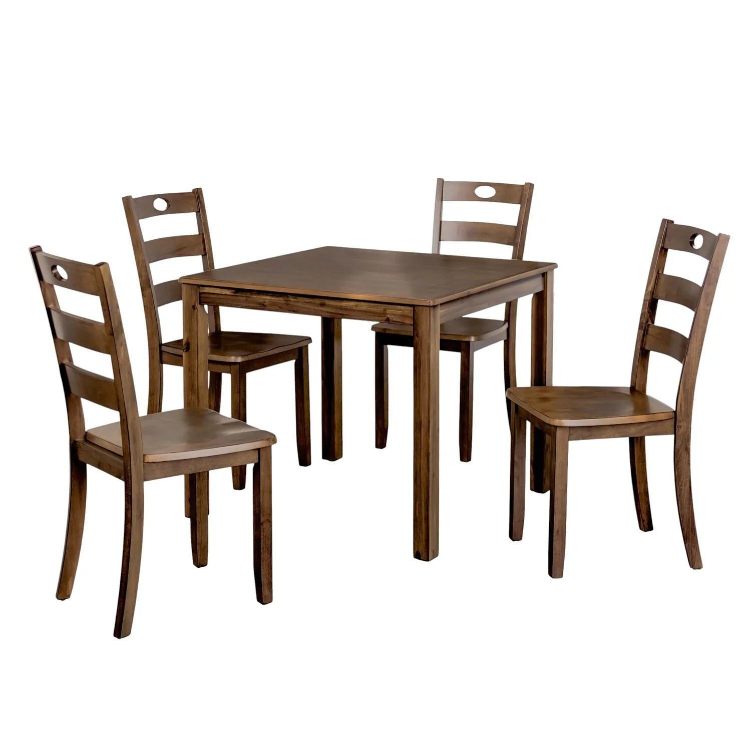 5 Piece Square Dining Set with Slat Back Chair in Walnut