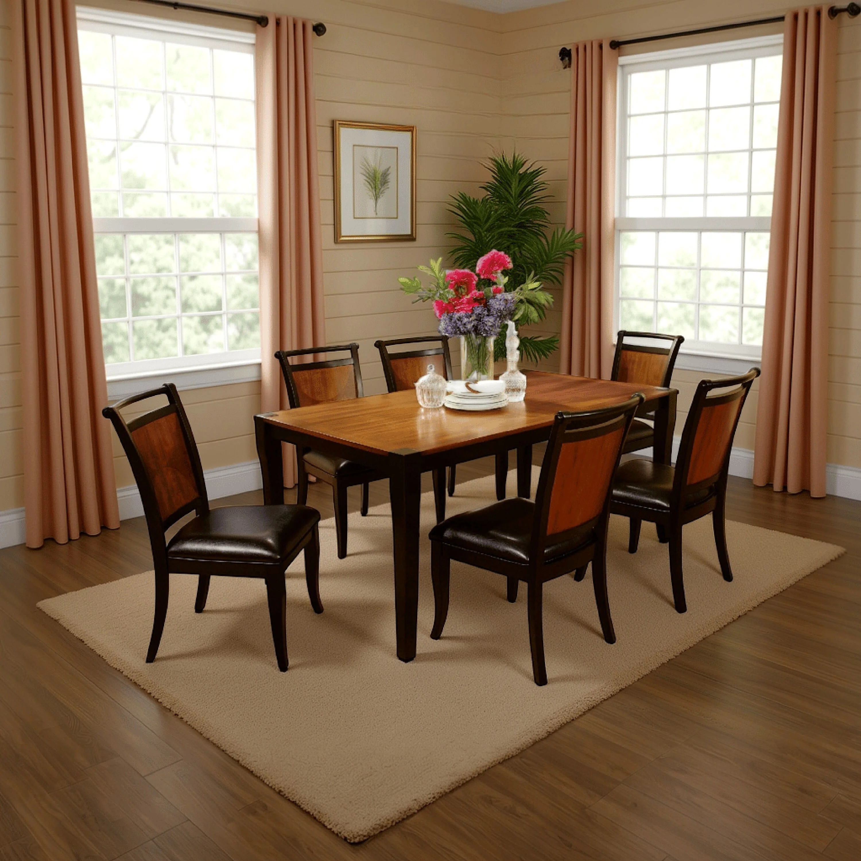 Giva 7pc Dining Table Set, 6 Polyester Chairs, Natural Brown Wood