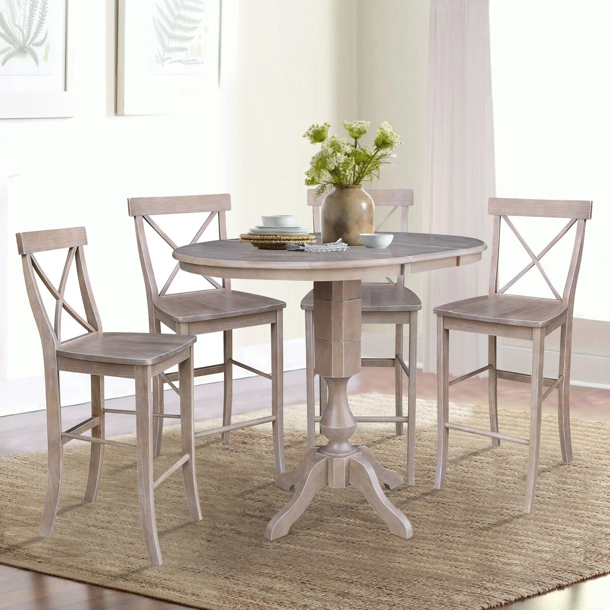 36 Extension Bar Height Table with Four Stools - Washed Gary Taupe