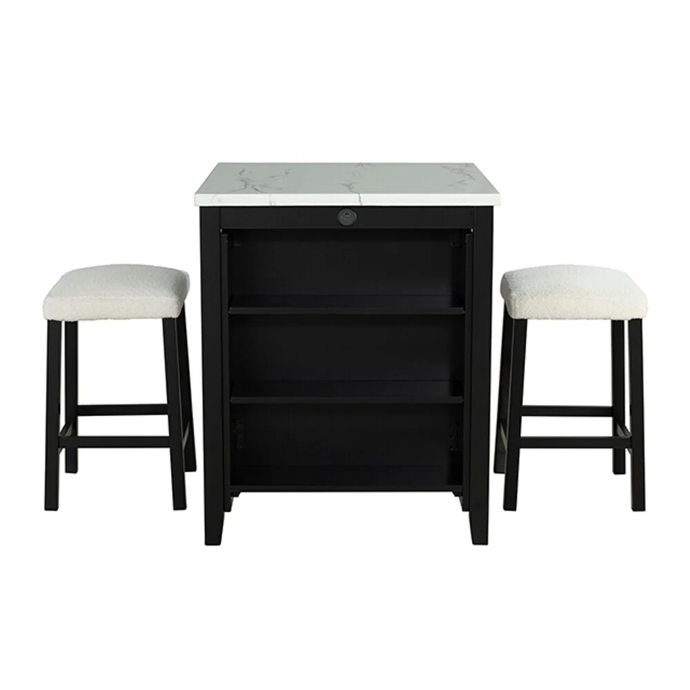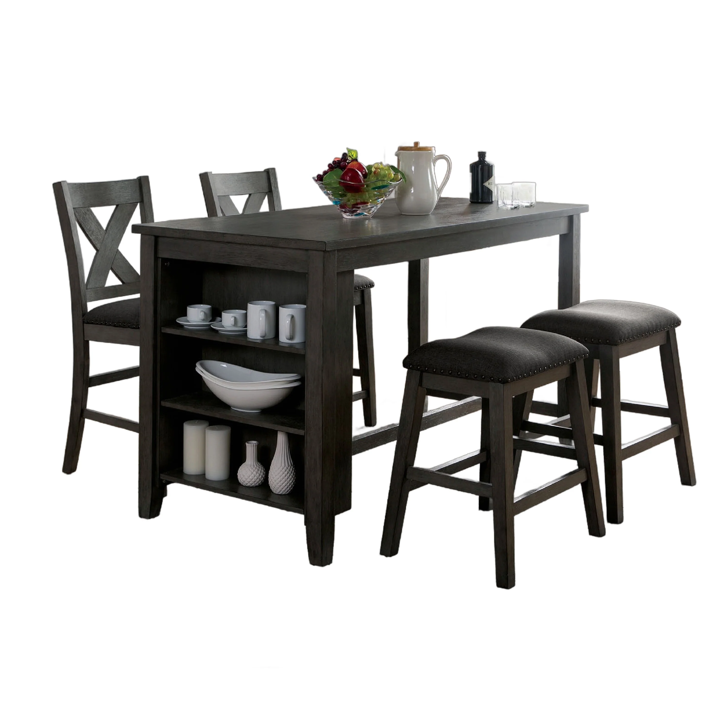 Liam 5pc Counter Height Table Set, Built-in Shelf, Gray Faux Leather
