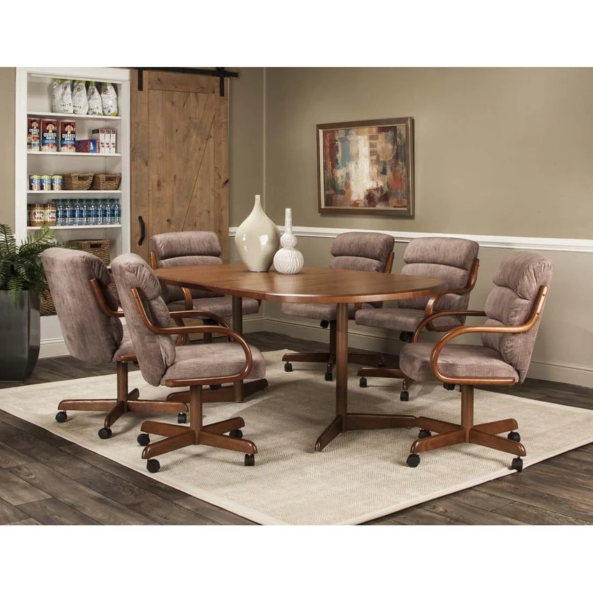 7 Piece Oval Wooden Dining Set in Walnut and Beige